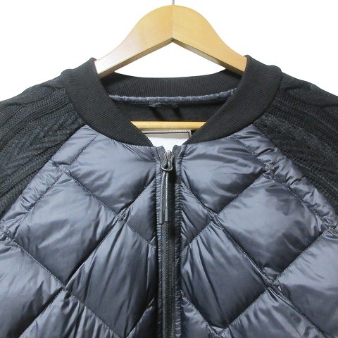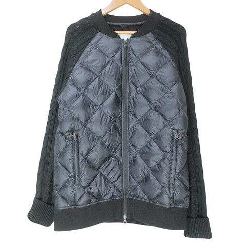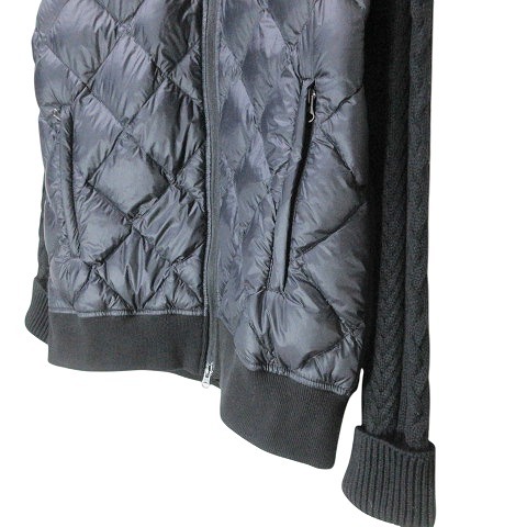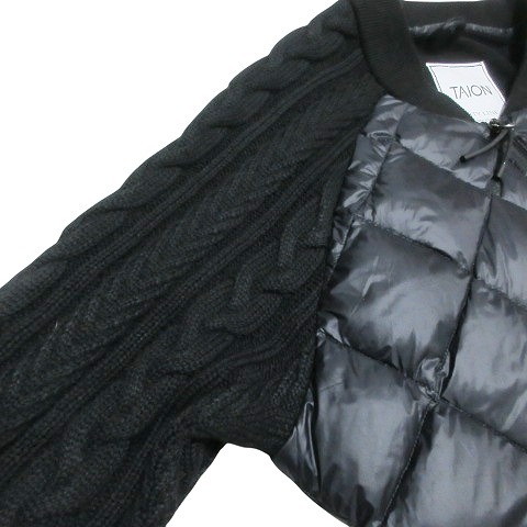 タイオン 美品 CITY LINE ダウン ニット スウェット Wジップ ジャケット ジップアップ ケーブル ナイロン 異素材 チャコール ブラック