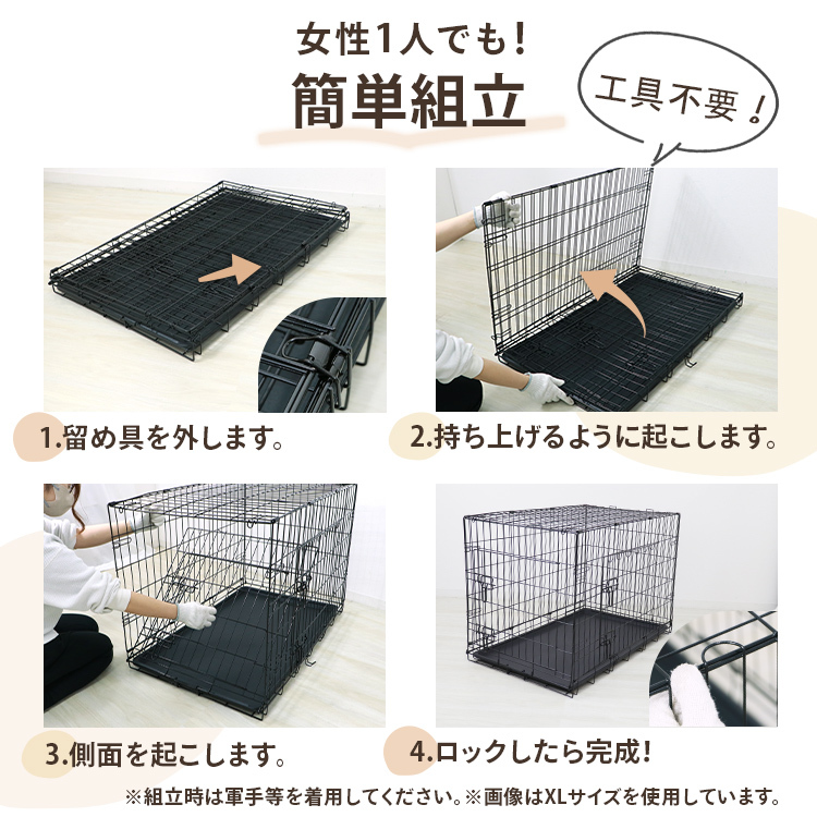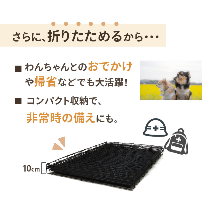 \ 移動に便利な折りたたみ式ペットケージ / お留守番・しつけ・災害時の避難用にも♪ 本体はネジ等を一切使用せず、パタパタっと開くだけの簡単組み立て式です。 折りたたむことができるので、使わない時の収納や移動する時もラクラク! 日頃からケージを自宅で使用し、ワンちゃんも使い慣れることで、 お出かけ先でも安心して休むことができ、ストレスの軽減にもつながります。 ★オススメポイント★ ・わんちゃんのテリトリー(安心領域) ・雷・地震などで不安や興奮した時の避難場所 ・留守中の誤飲を防止 ・事故や怪我を防止 ・しつけができる ★こんな時にお役立ち★ ・屋根付きだから来客時も安心 ・多頭飼育用に ・目を離す留守中に ・預けなければいけないときに ・旅行にそのまま ・災害時の避難用に ■商品コード:PT0017D ■商品仕様 サイズ 全体:(約)幅68×奥行108×高さ75.5cm 内寸:(約)幅62×奥行98×高さ73.5cm 正面入口:(約)幅52×高さ54cm 側面入口:(約)幅56×高さ56.5cm 折りたたみ時:(約)幅69.5×奥行108×厚さ10cm 重量(約):11.4kg 材質:スチール、ABS樹脂 参考サイズ:中型犬、大型犬 ■注意事項 ・ご注文時サイズは必ずご確認ください。 ・参考サイズはあくまで目安です。 ・本製品は屋内専用です。屋外で使用すると錆や変色の原因となります。 ・サイズ間違い、イメージとの違いによる返品、交換は一切行っておりません。 ・海外製品で、簡易梱包での輸入のため風防に擦れや多少の小キズなどがある場合がございますが、商品自体には問題ありませんのでご了承下さい。 ・仕様・デザインは改良のため予告なく変更することがあります。 ■保障期間 7日間 ※商品到着後7日以内の初期不良・破損のみご対応させていただきます。 【新品未使用品です】 ▼検索ワード 犬 いぬ ドッグ 犬用 猫 ケージ けーじ ドッグケージ 犬用ケージ ゲージ ペットサークル ペットハウス ペット ペット用品 ペットケージ ペットゲージ 室内サークル フェンス テレビガード 囲い 仕切り パーテーション 柵 小屋 犬小屋 オリ カゴ 侵入防止 脱走防止 ガード ゲート サークル サークルケージ 屋内 室内 子犬 子猫 小型犬 中型犬 大型犬 犬 わんちゃん うさぎ モルモット フェレット ペットフェンス 折り畳み おりたたみ コンパクト しつけ |
