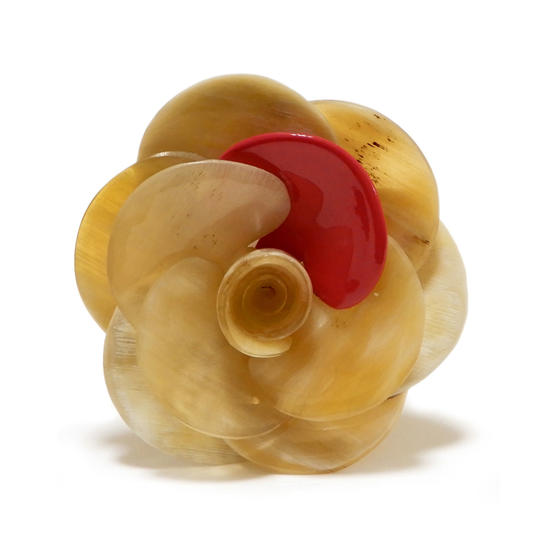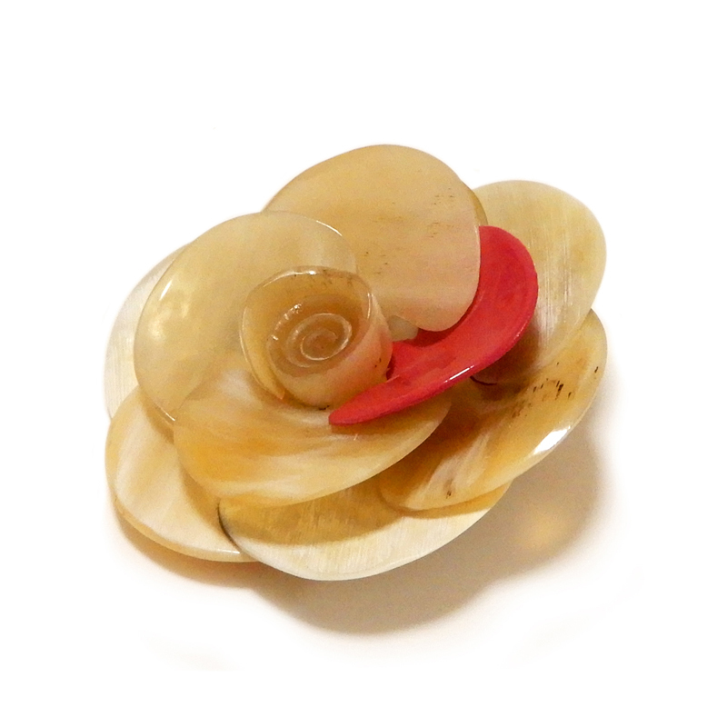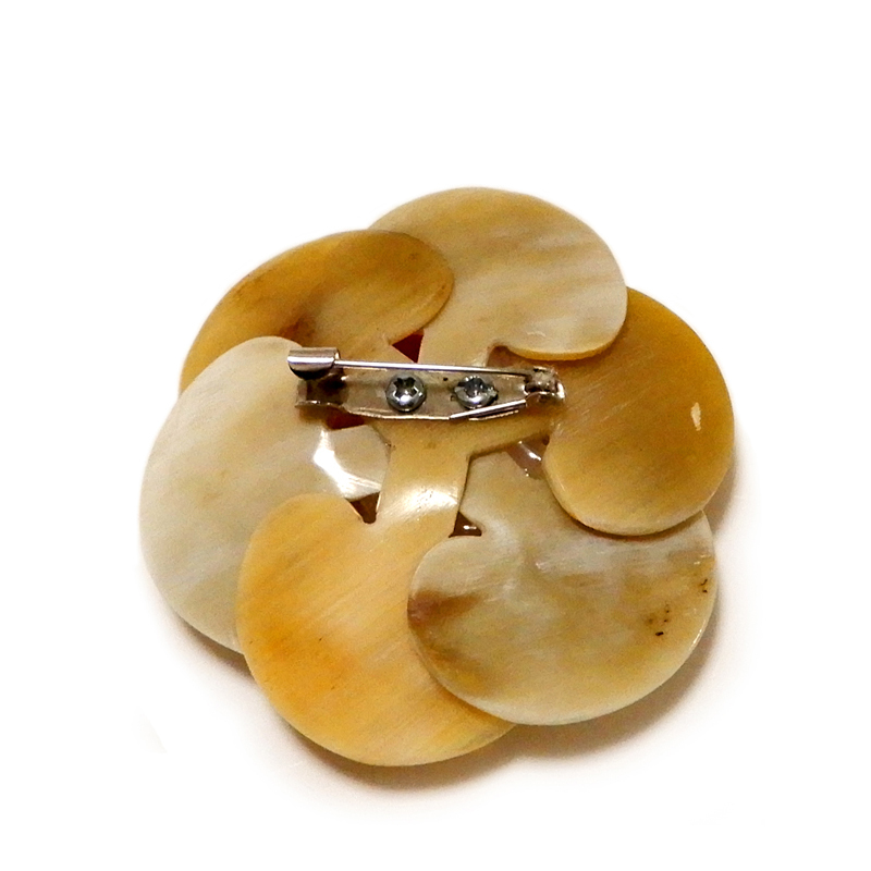 画像商品をお届け【新品】水牛の角ブローチ 薔薇 Φ6.0cm 1枚の花びらローズ・マダー (4) バッファローホーン クリックポストなら送料¥185