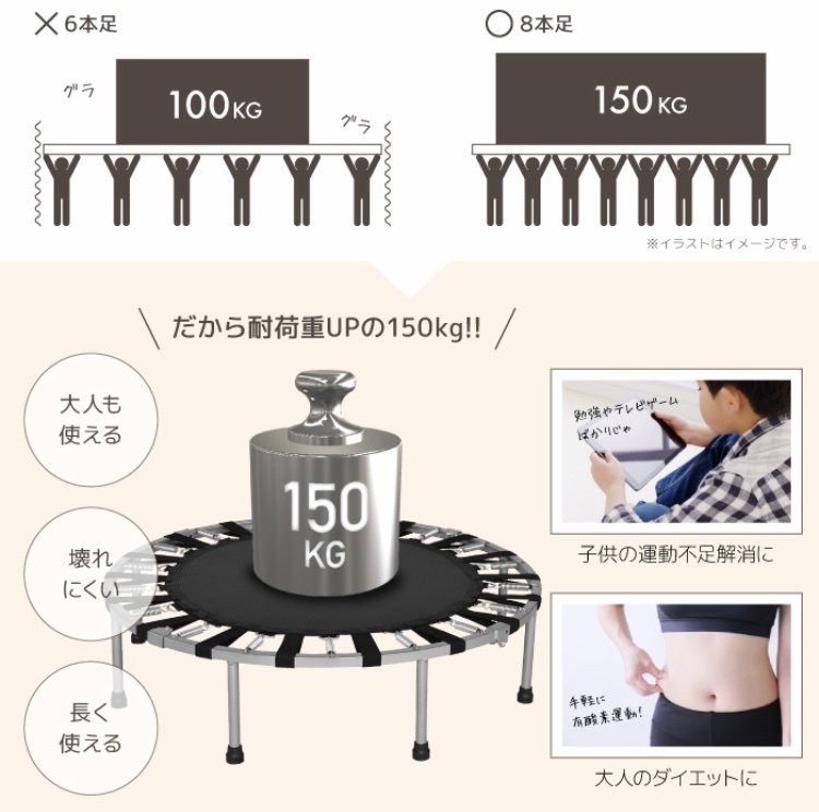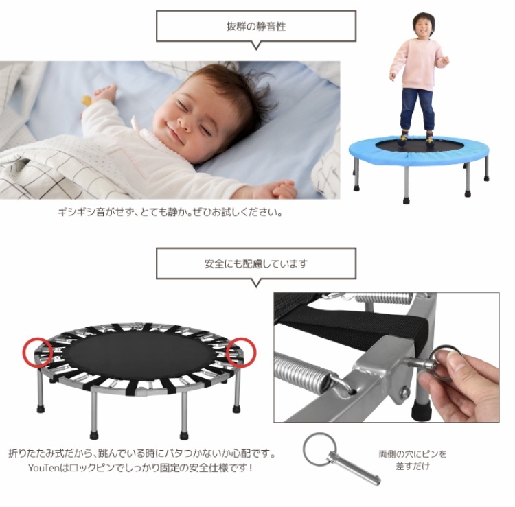トランポリン youten YT-TPN 110cm 耐荷重 150kg 室内用 家庭用 エクササイズ ダイエット フィットネス 子供