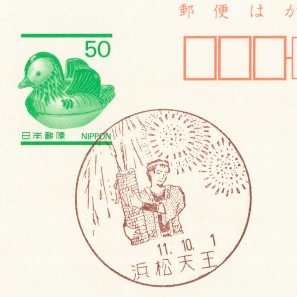 風景印☆初日☆静岡・浜松天王・H11.10.1・花火