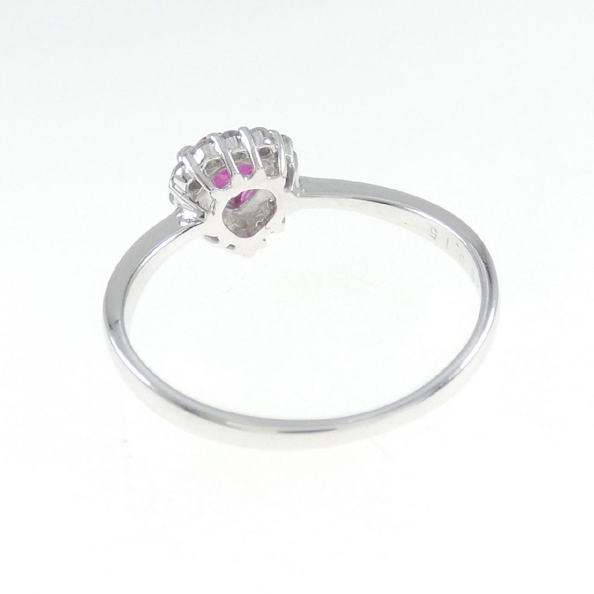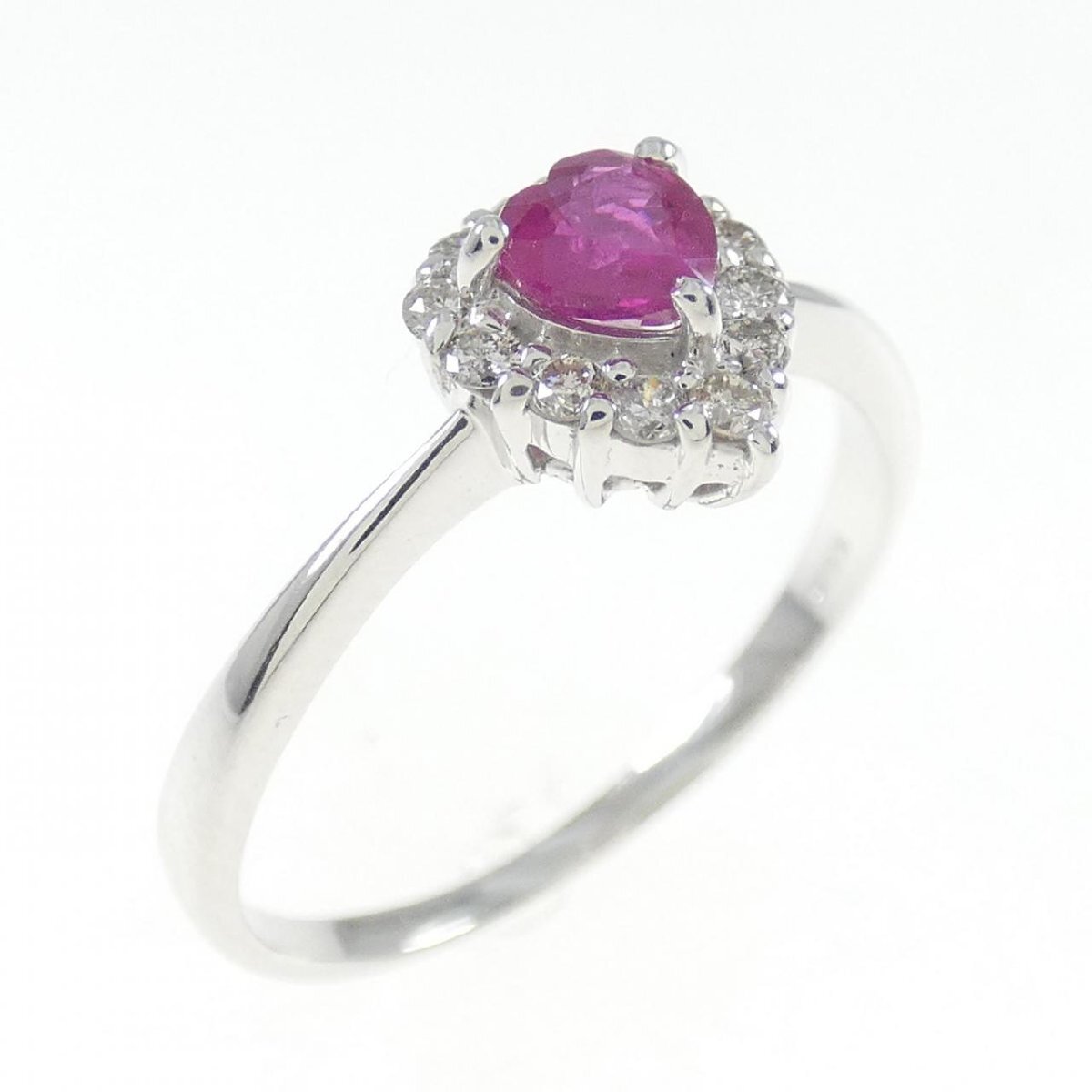 照りのあるルビーとダイヤモンドをあしらったリング。指元を明るく惹き立てます。