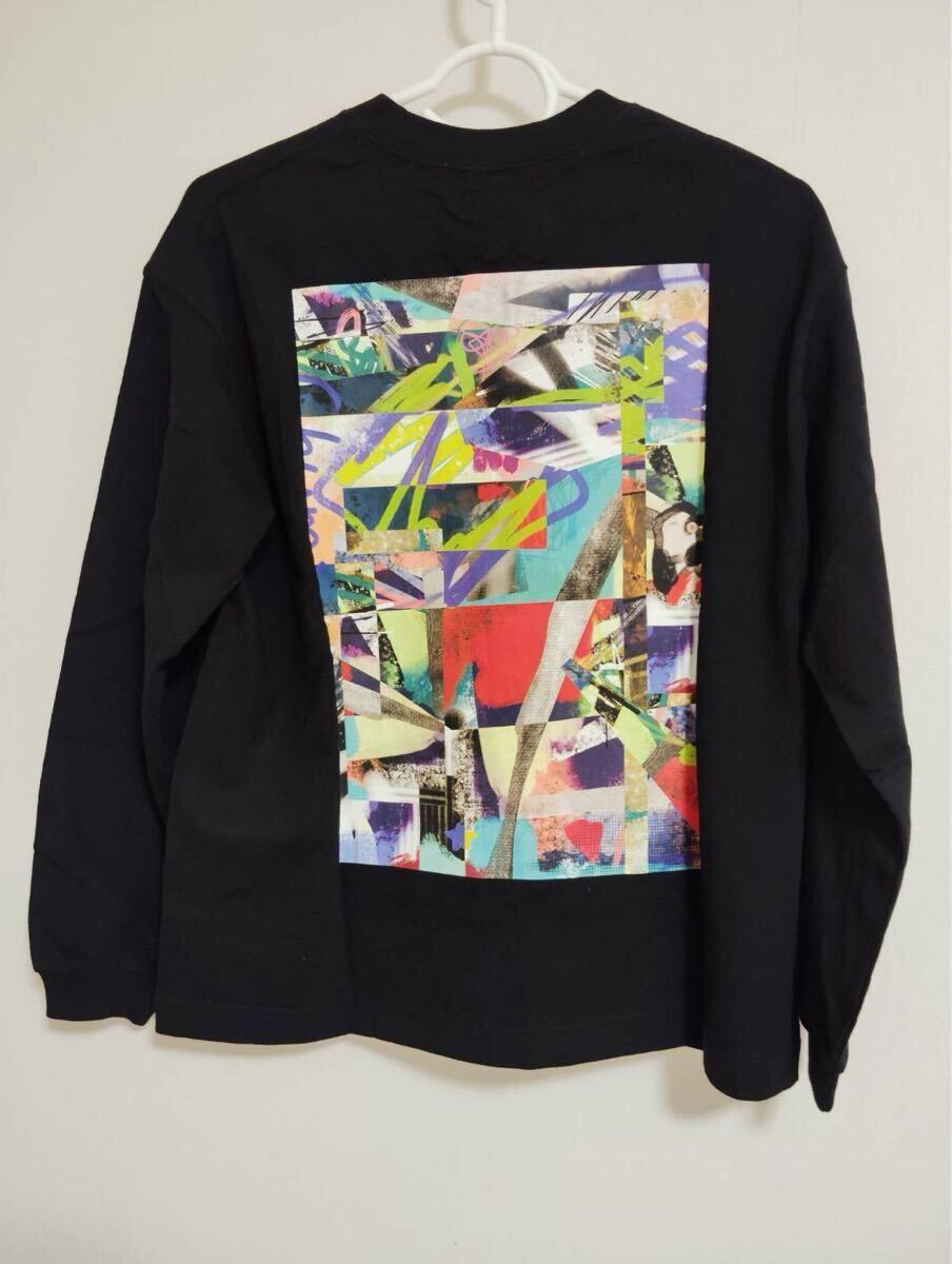 身幅にたっぷりとゆとりを持たせたオーバーサイズのロングスリーブTシャツ。全体的にゆったりしたシルエットで、袖口はリブ仕様。フロントはシンプルに、バックにはSHINJIRO TANAKA氏描きおろしの『Rebirth』のグラフィックをプリント。右裾には当コラボオリジナルの織ネーム付き。