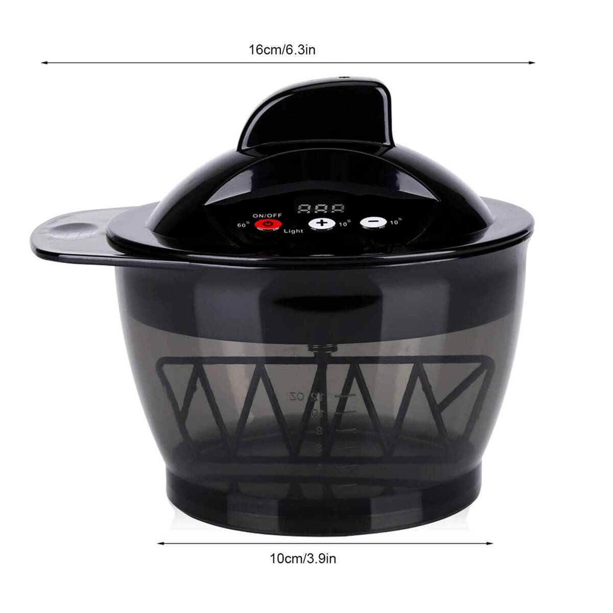 セルフタイミング性能を備えたヘアカラーミキシングボウルは、さまざまなニーズを満たすために複数の時間を選択できます。漂白剤の煙や酸素の臭いがなくなり、とても便利です。染料漂白剤を完全に混合でき、操作と清掃が簡単で、より省力化できます。 LCD時間表示により、残り時間が簡単にわかります。低電圧動作、安全に使用できます。持ち運びに便利なポータブルサイズ。プロのサロンでの使用に適しています。