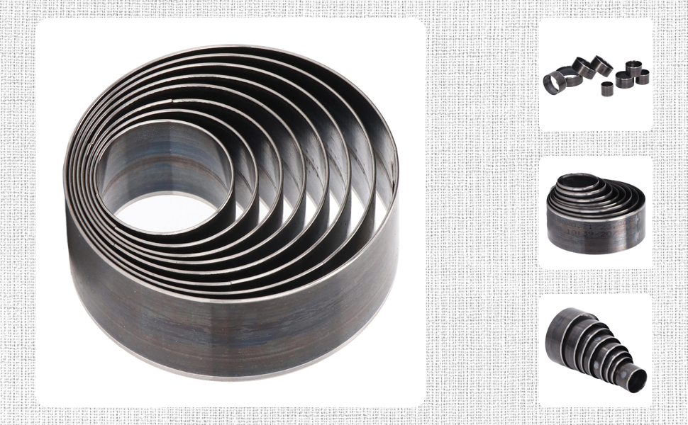 • この革のカッティングダイセットには、革を扱うときに円形の素材で遊ぶのに役立つ8つの円形のカッティングダイが含まれています