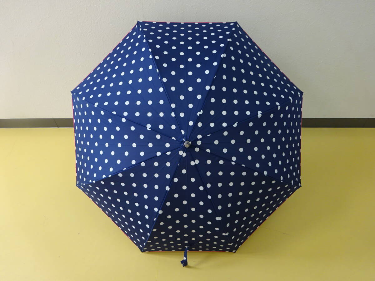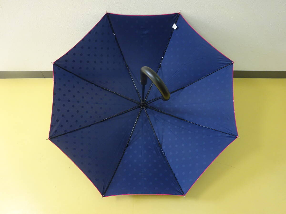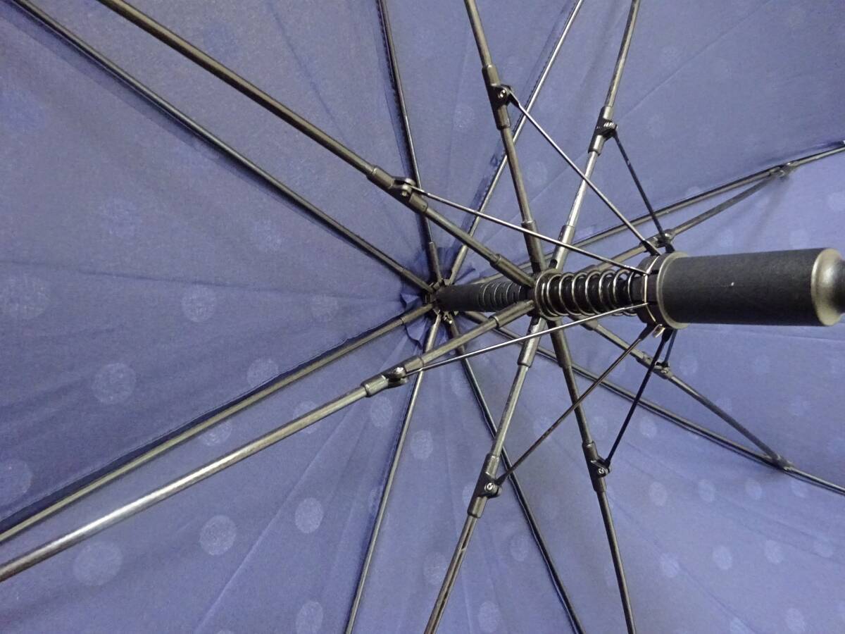 (せ-A1-1166)長傘 Ortensia オルテンシア sinco ワンタッチジャンプ式 ネイビー 紺 ドット 水玉 かわいい 全長約86.5cm 半径約52cm 中古 | |