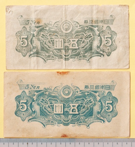 彩紋5円 12 テープ跡(シミ)耳部分切れ 茶味 22 切れ破損 ヘゲ 折れシワ |