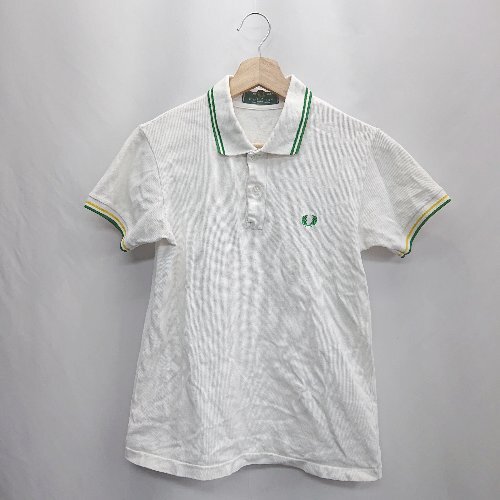 ◇ ⊂ Φ FRED PERRY フレッドペリー ブランド刺?ロゴ 半袖 ポロシャツ サイズ40 ホワイト系 レディース メンズ E