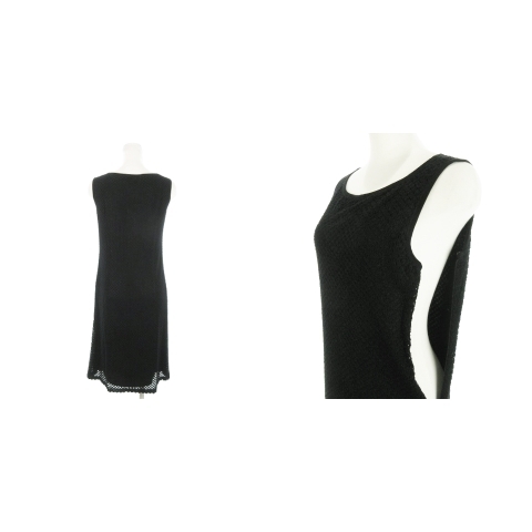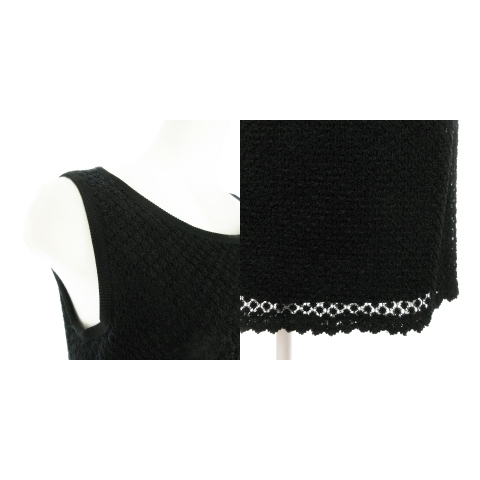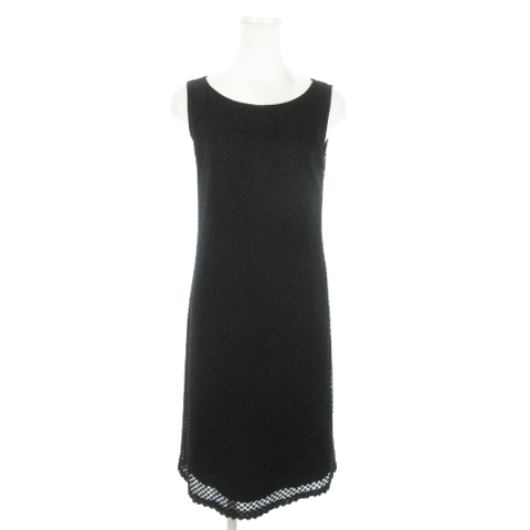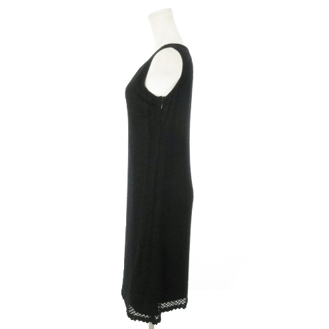 エムケー ミッシェルクラン MK MICHEL KLEIN ワンピース ニット ひざ丈 ノースリーブ 透かし編み レース編み きれいめ 38 黒 ブラック /AO6 レディース