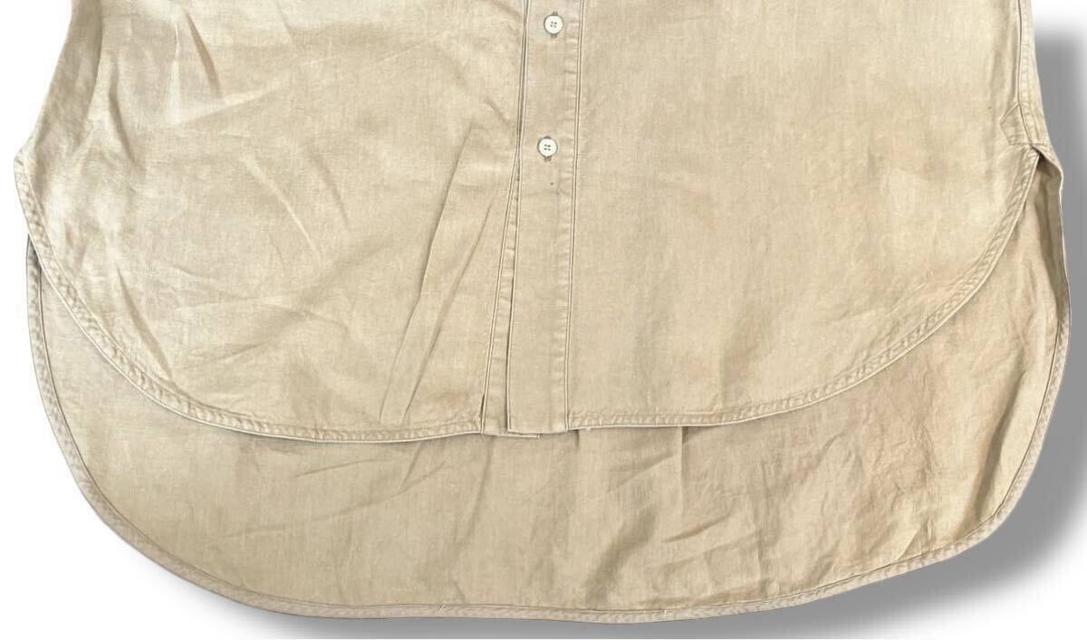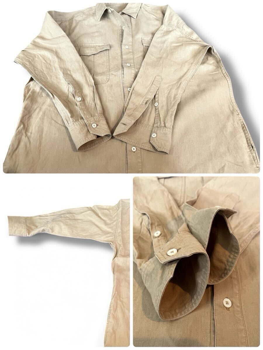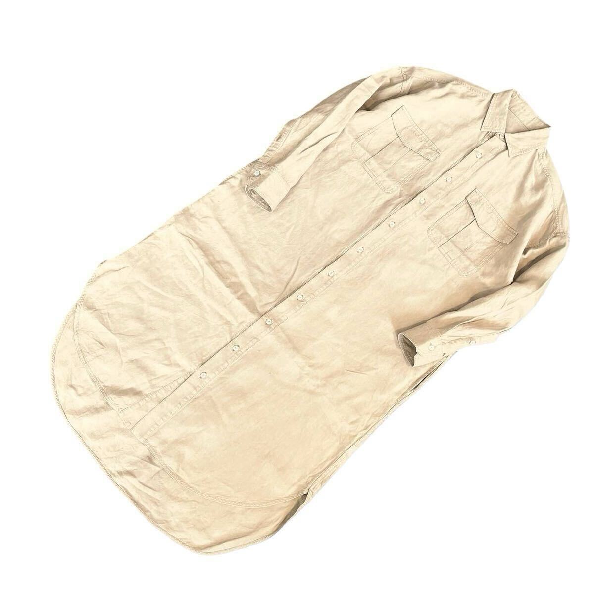 Herdmans 春秋 ロングシャツワンピース ベージュ系 フリーサイズ リネン100% 日本製●洗濯プレス済●ハードマンズ 長袖 古着/259