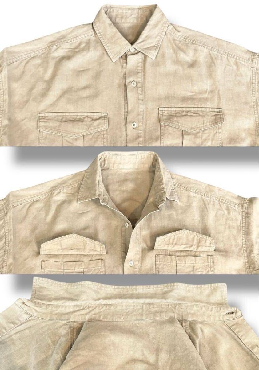 全体的に使用感はありますが、大きなダメージは見当たりません。リネン特有のシワ感や経年変化を味として楽しんでいただける方におすすめです。