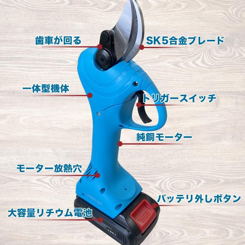 ★送料無料 バッテリー2個付 充電式 剪定バサミ 電動剪定ばさみ 切断直径30mm 収納ケース付枝切り コードレス 軽量 剪定鋏 園芸庭木工具