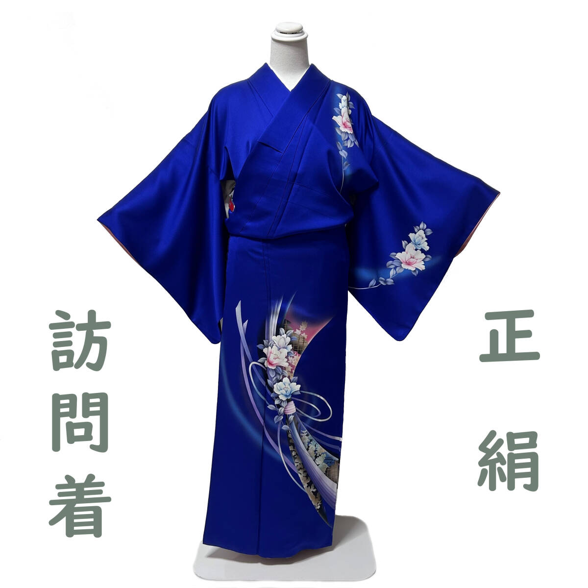 ★訪問着 着物 フォーマル 正絹 束ね熨斗 瑠璃色 中古 仕立て上り 身丈161 裄65 Mサイズ ★