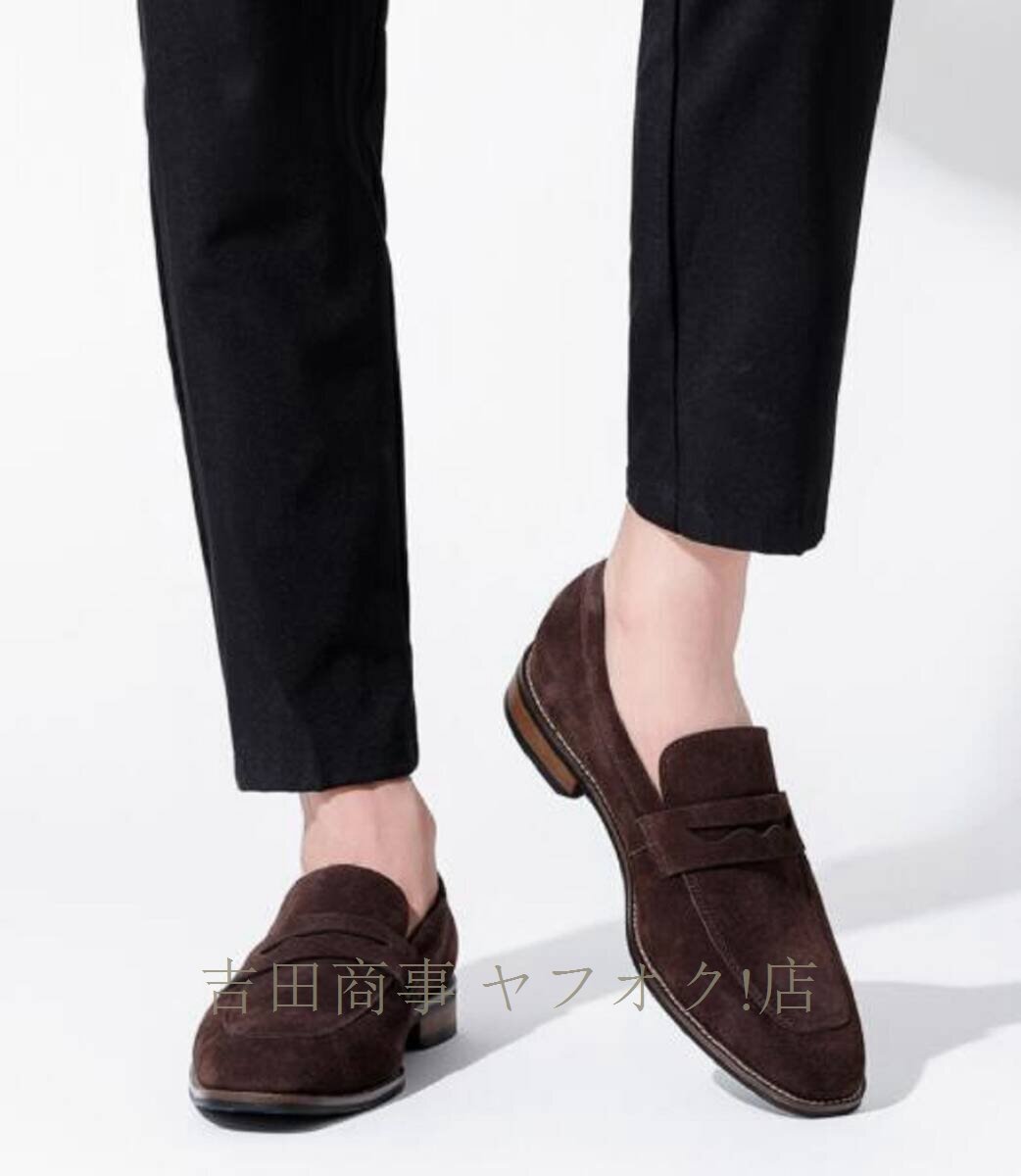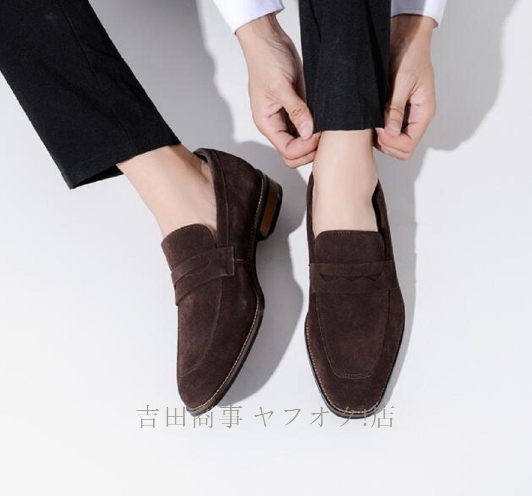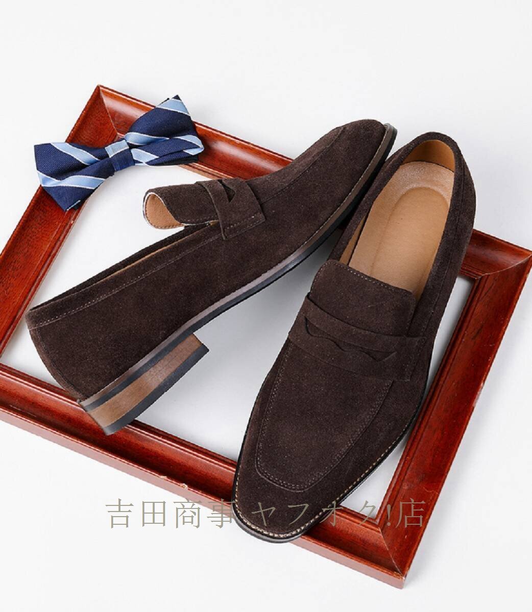 ☆新品スエード革 ローファー スリッポン メンズ ビジネスシューズ 手作り イギリス風 牛革 レザーシューズ 本革 革靴 ブラウン 25.0cm