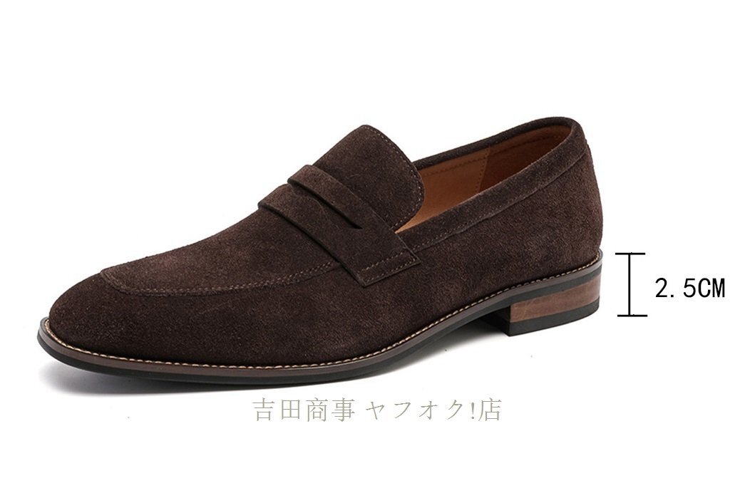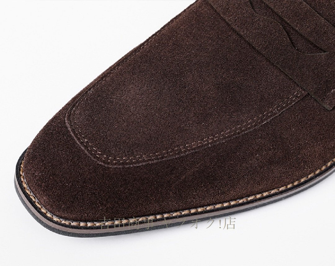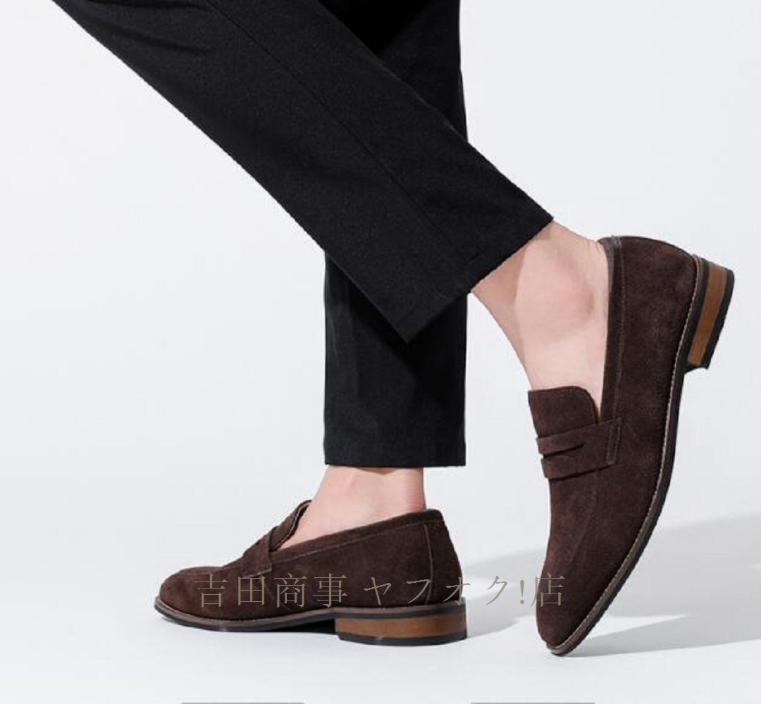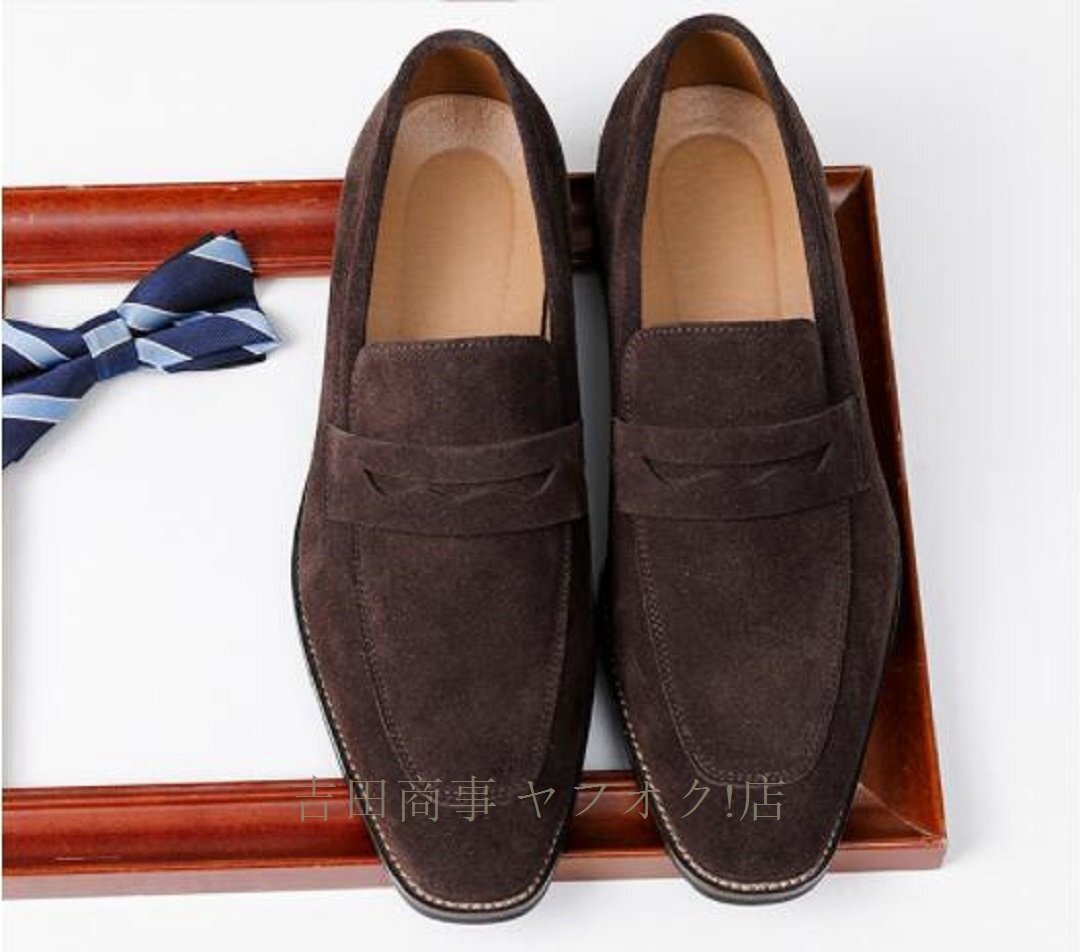 ☆新品スエード革 ローファー スリッポン メンズ ビジネスシューズ 手作り イギリス風 牛革 レザーシューズ 本革 革靴 ブラウン 25.0cm