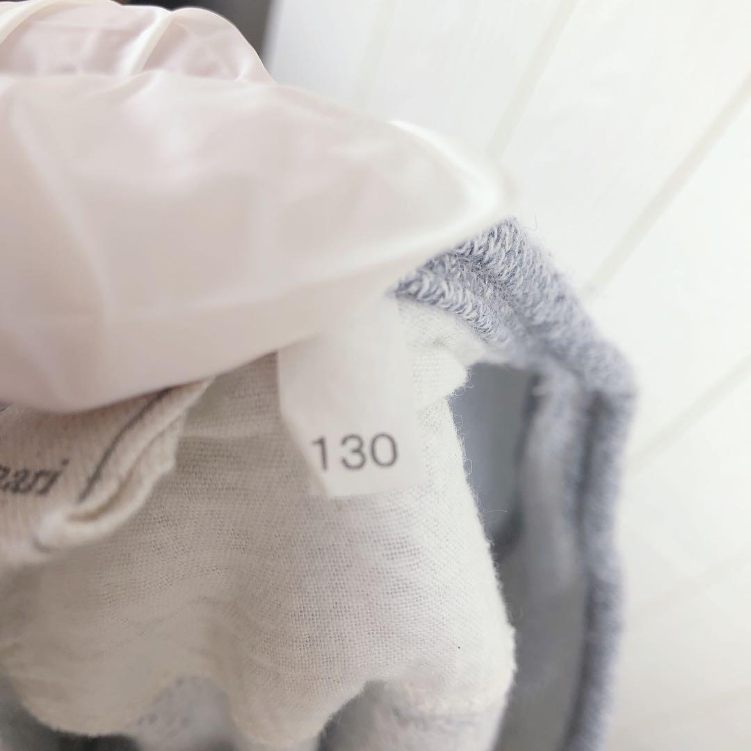 グレーのボタン付きカーディガン、肩幅30cm、着丈41cm。