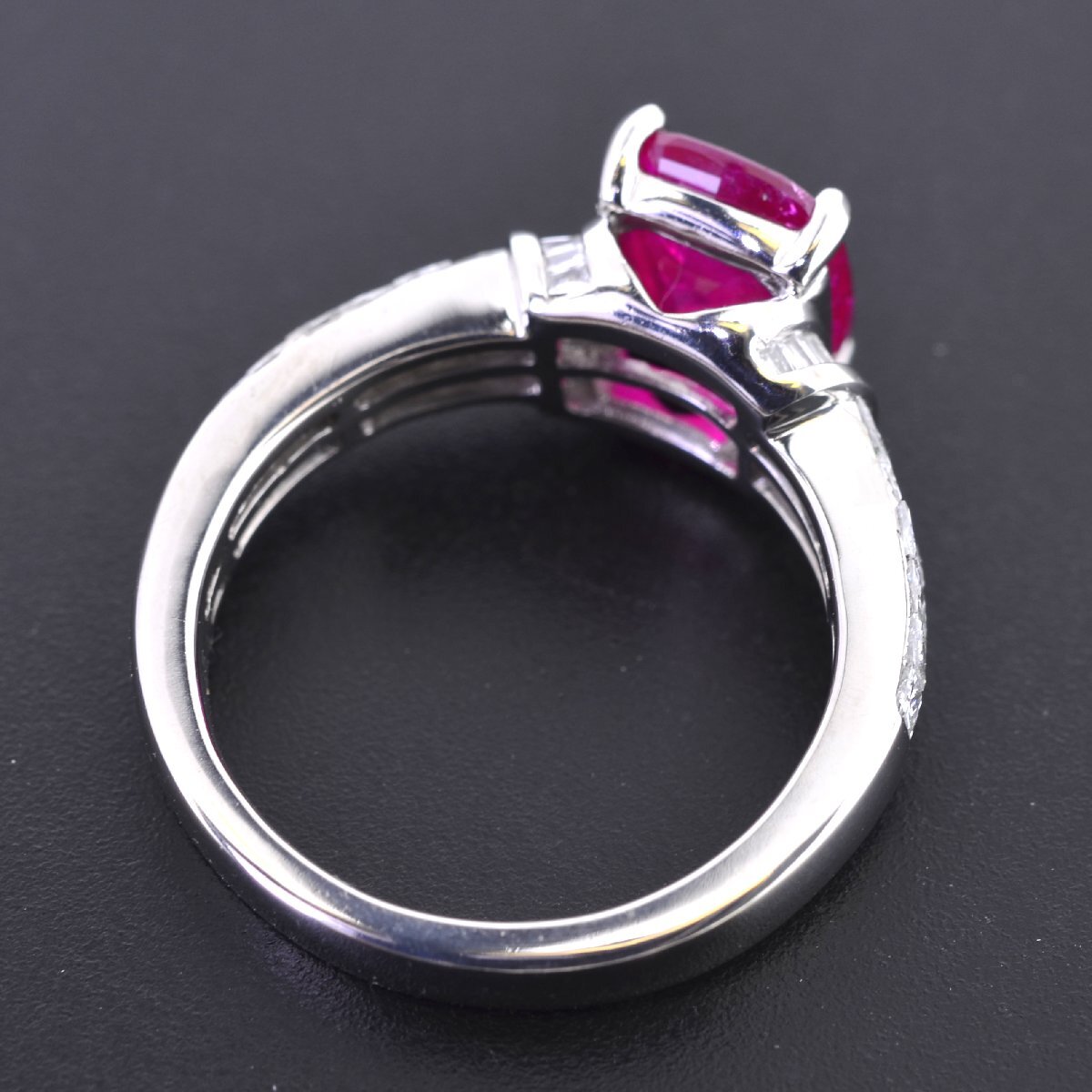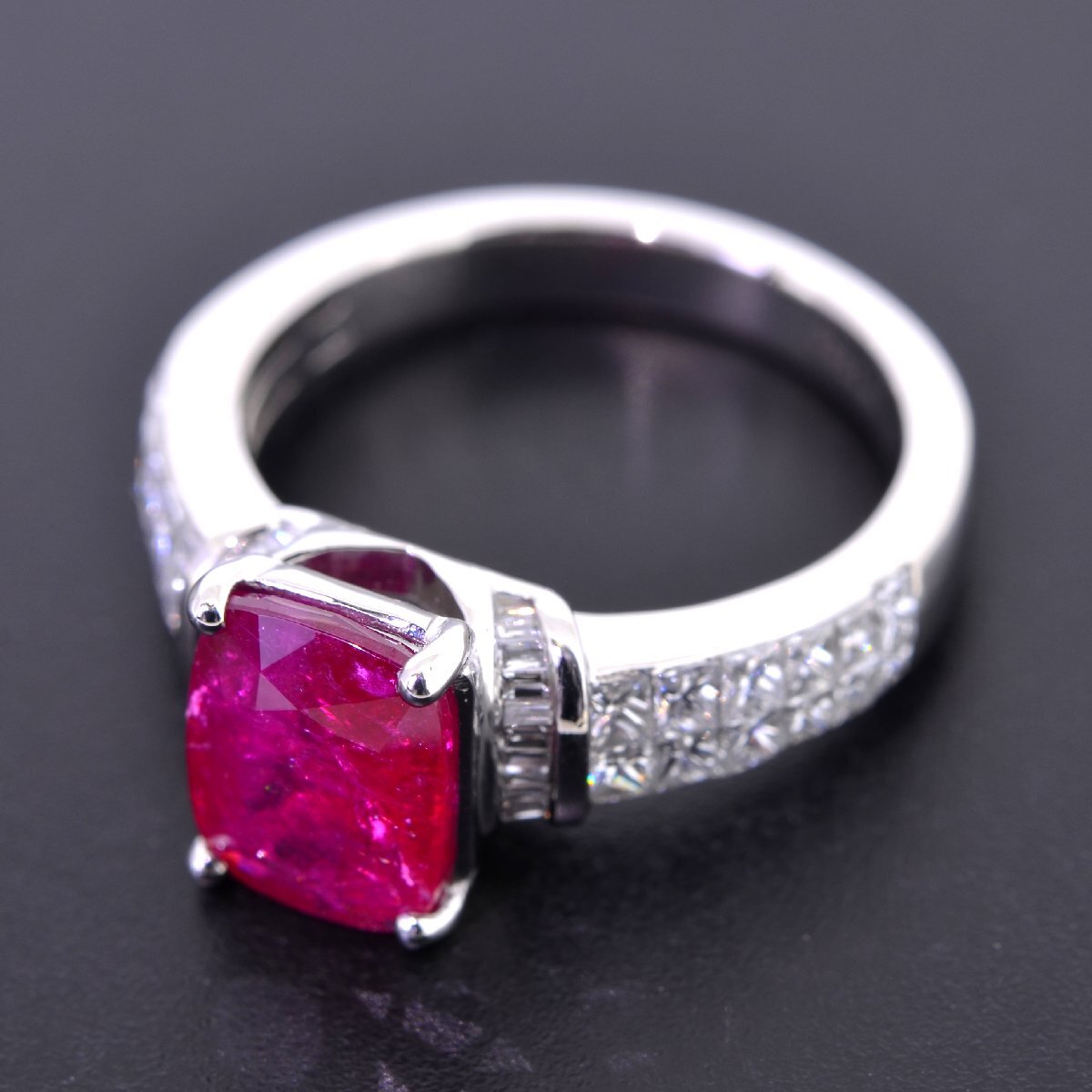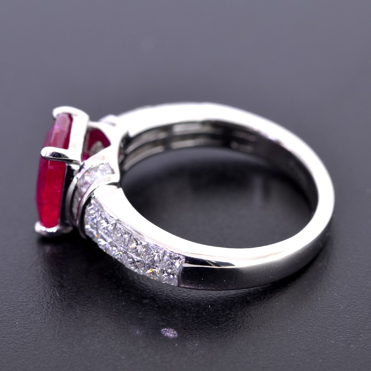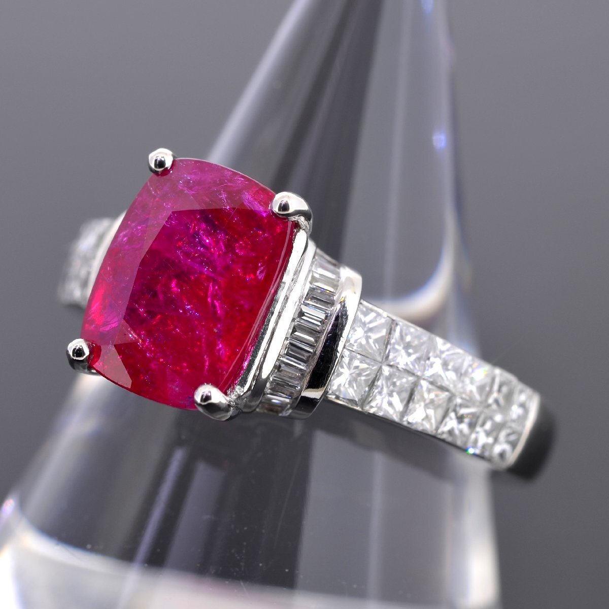 Pt950 東アフリカ産 非加熱ルビー2.65ct ダイヤモンド0.85ct リング GRS鑑別書付 プリンセスカット ミステリーセッティング | ||||