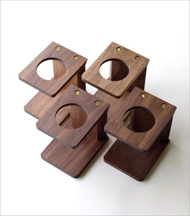 | ウォールナットの無垢材で作られた コーヒードリップスタンド ウォールナットの シンプルなデザインと 真鍮のネジが カッコいいアクセントになっています お手持ちのドリッパーをセットして カップを置き、珈琲を淹れます 自分の為に ゆっくりと時間をかけて コーヒーを淹れる・・・ とても贅沢な時間が過ごせそうです 商品名 : 木のコーヒードリップスタンド 商品番号 : kch0271 全体サイズ(cm) : 幅10×奥行13×高さ12.5 ドリッパーセット部分(上部穴) : 直径6.4 重量 : 320g 材質 : 天然木 真鍮 生産国 : 日本(飛騨) ※セラフィルター、カップは別売りになります ※天然オイルで塗装されています。長時間の水濡れはシミ・変形の原因になる場合がございますのでご注意下さい ※直射日光に当たる場所やエアコンの風が直接当たる場所では、木の反りや割れの原因になりますのでご注意ください ※天然木使用のため、木目や節など1本1本異なります |