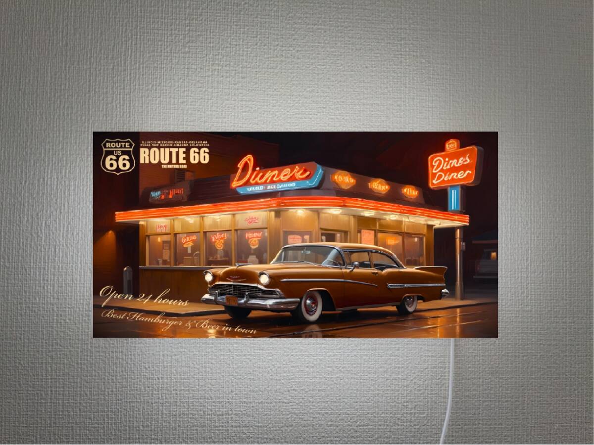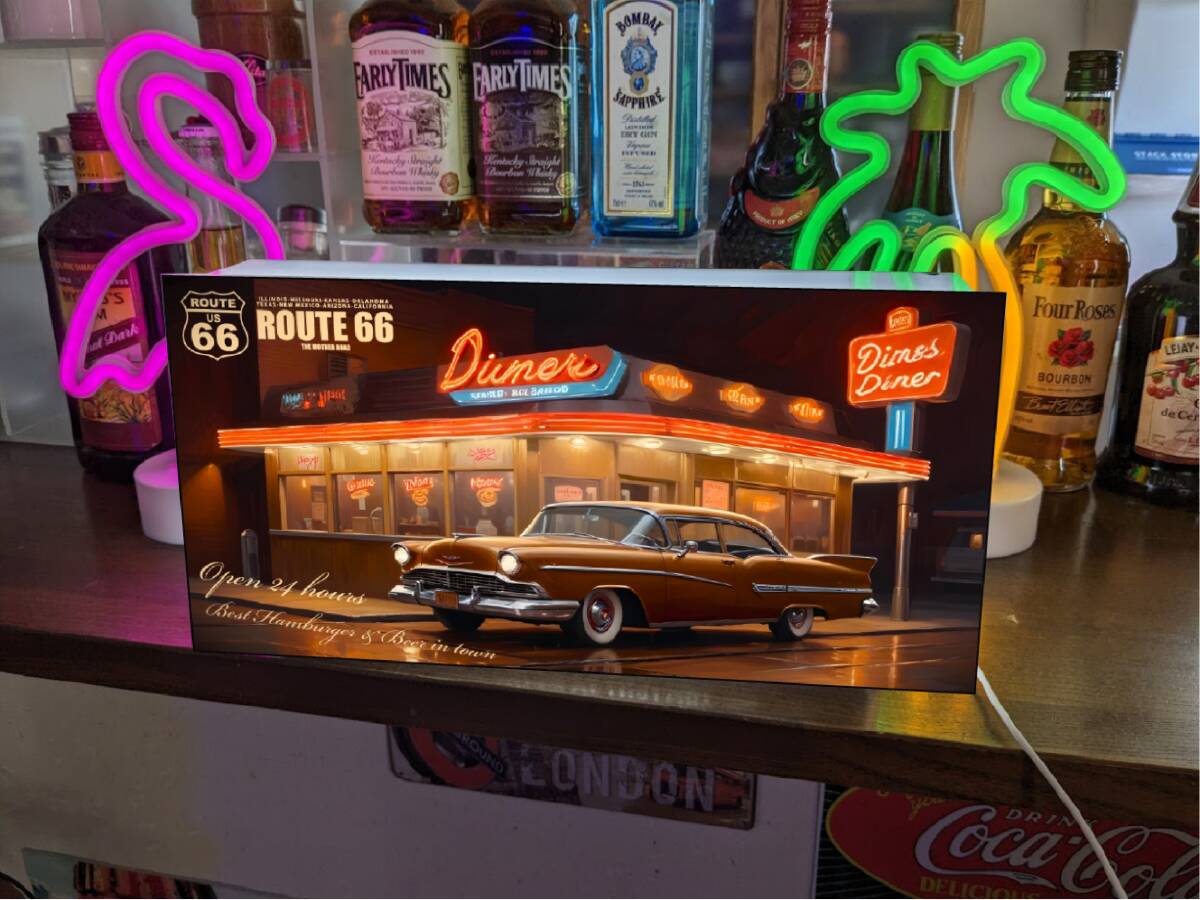 ★画鋲で壁に簡単設置★ 店舗、自宅、ガレージ、オフィスの窓際・カウンター・棚・テーブルやちょっとしたスペース、車内・キッチンカー・屋台・イベント・パーティーなどに 【レトロアメリカン ダイナー】電飾看板Lサイズです★ 勿論、置物としても◎ オーダー無料、プレゼントにも大変好評頂いております★ ◆サイズ◆20センチ×40センチ×奥行き7センチ ◆材質◆本体(アクリルプラスチック製)・表示面(IJバックライト発光フィルム貼り) ◆電源◆USB供給電源(家庭用コンセントコネクタ付き) 〇他サイズ〇 ●Mサイズ 150mm×300mm ●LLサイズ 300mm×600mm ●3Lサイズ 400mm×800mm ●4Lサイズ 500mm×1000mm ◆オリジナルデザイン・オーダーも承っておりますので、お気軽にお問い合わせください。 自社製造製品 店舗 自宅 キッチンカー フードトラック 屋台 パーティー イベント サイン ランプ ライト 照明 看板 インテリア雑貨 置物 雑貨 テーブル カウンター 電飾看板 電光看板