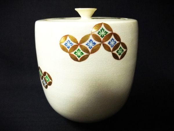 【睦】国領拡治「玉領」作 七宝つくし 水指 箱書「大徳寺 義山筆」共箱■