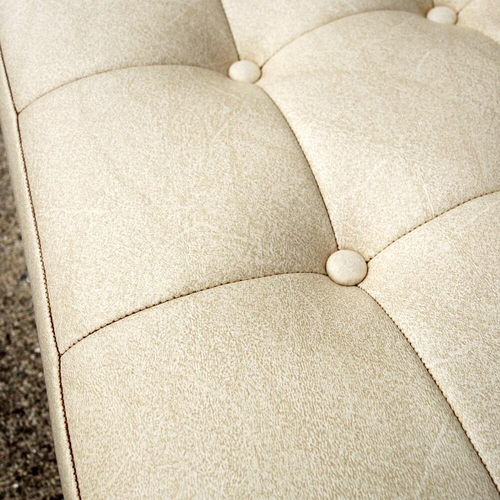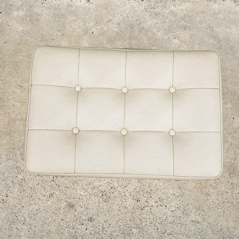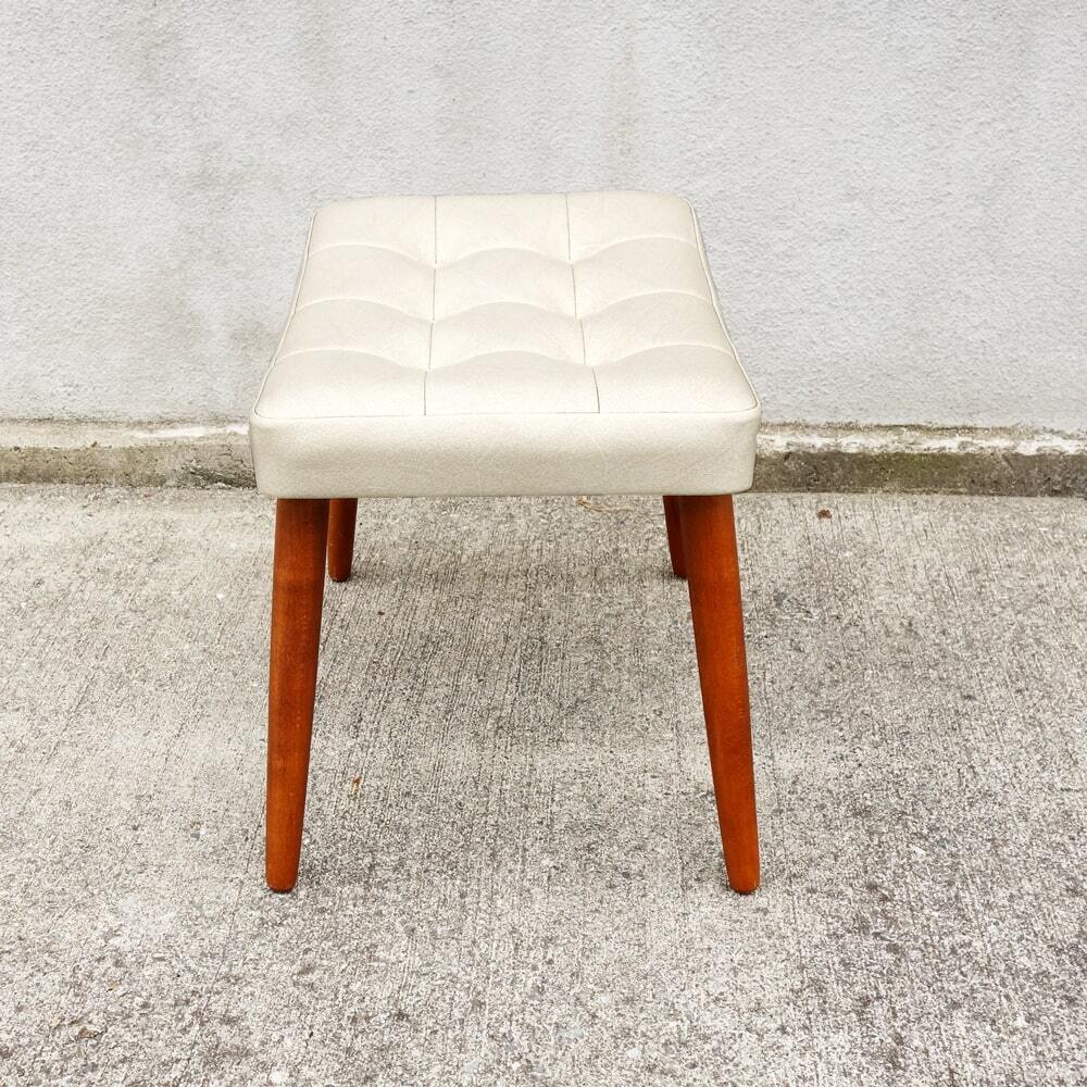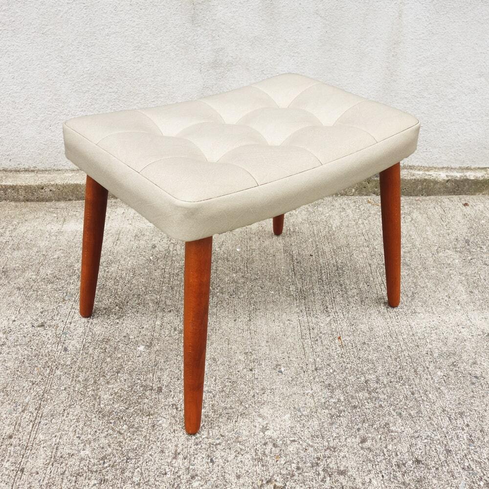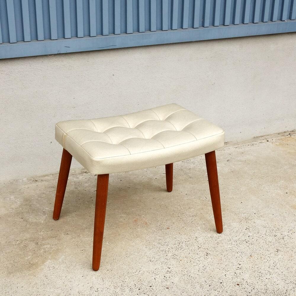 真っ白というよりもアイボリーっぽい色の合成皮革の座面に木製の脚が付いたミニスツール。