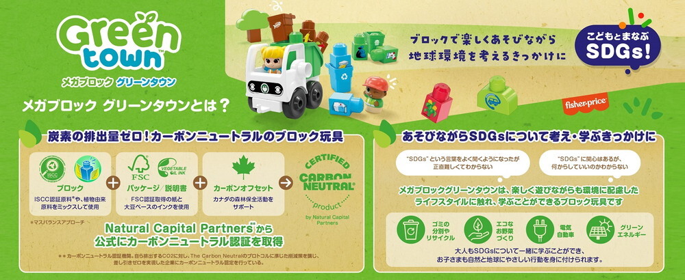 ブロックはISCC認証原料や、植物由来原料をミックスした地球にやさしい素材でできています。