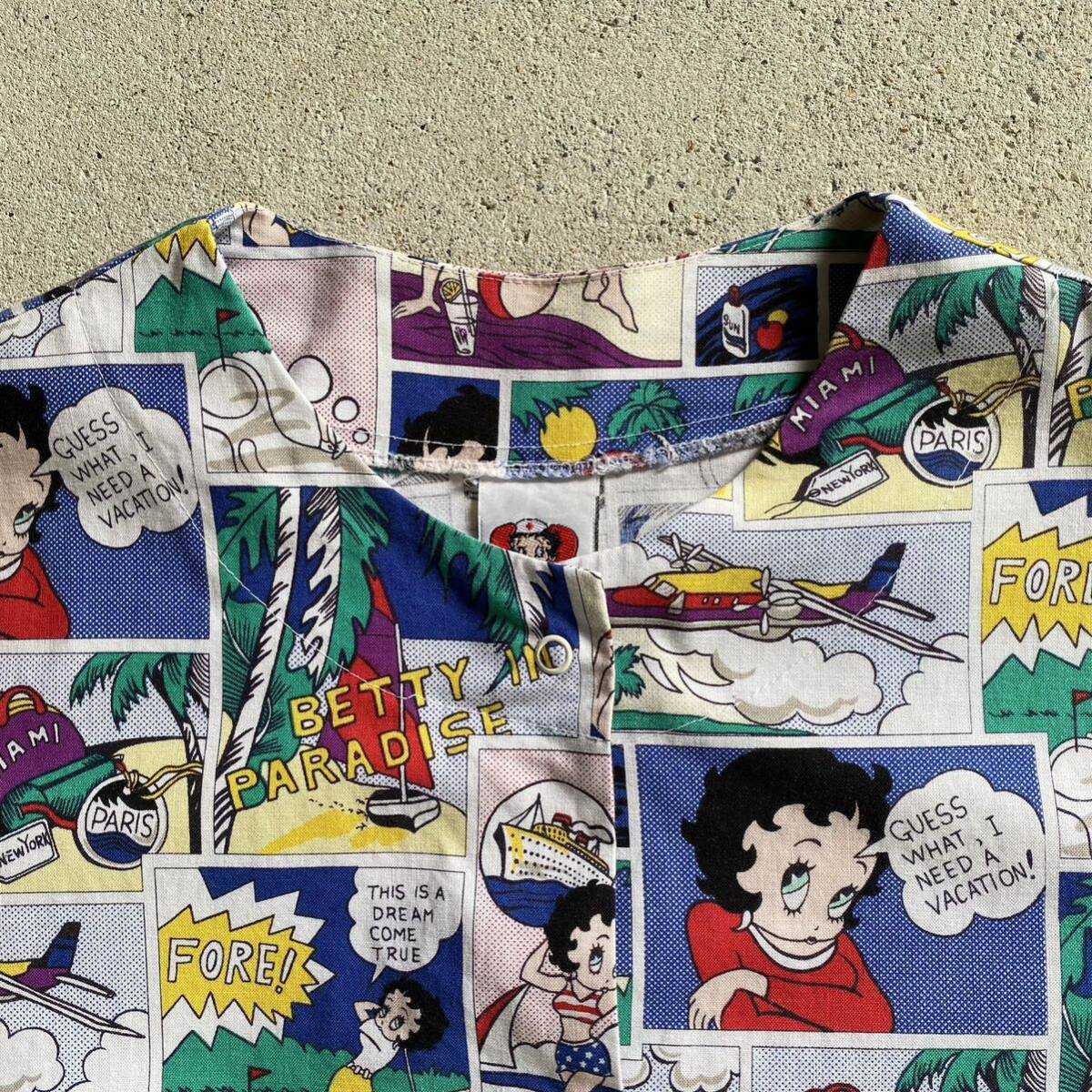 90’s Betty Boop Over Print Shirt 総柄 長袖 シャツ ベティVintage used 古着
