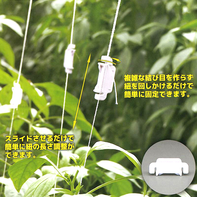 ・糸つり小結を上下にスライドすることで誘引紐の長さを調整することができます。