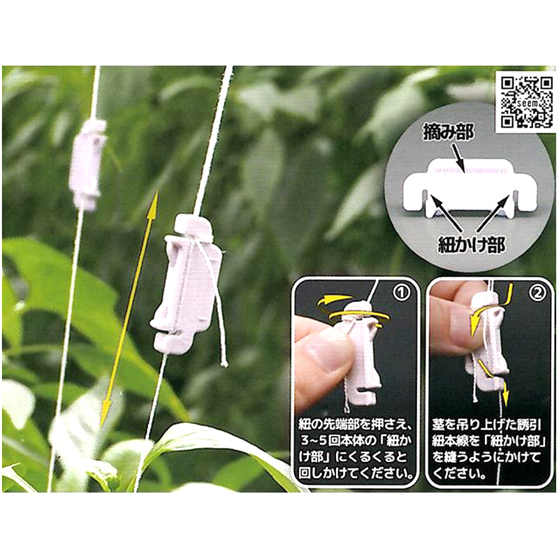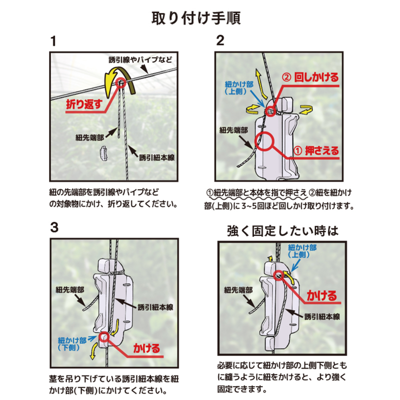 ・誘引紐を取り付ける際に、結び目を作らずに容易に固定することができます。