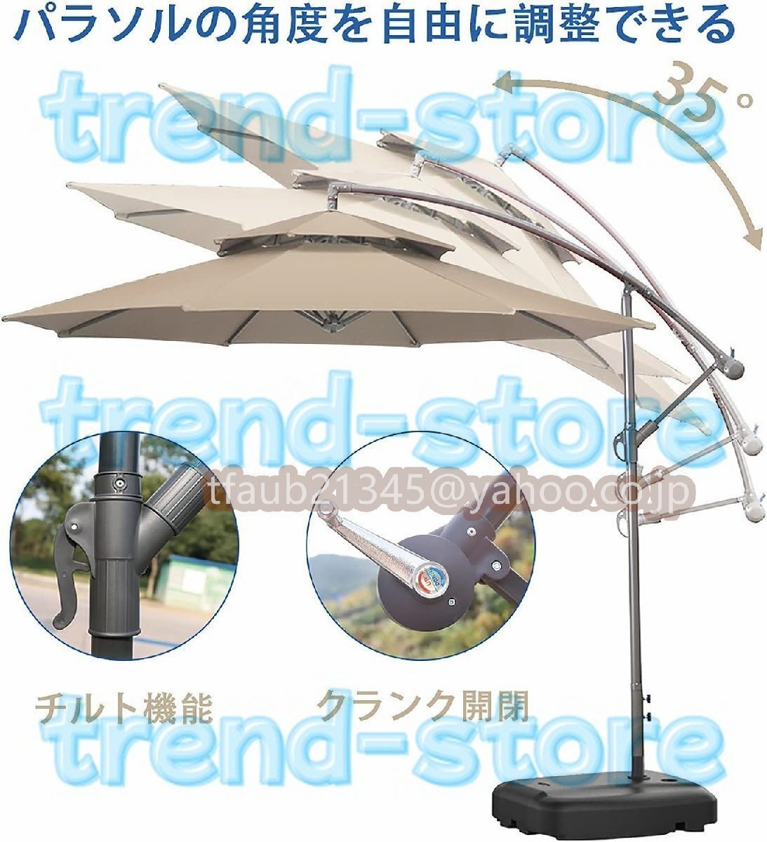 パラソル ガーデンパラソル 大型 風に強い (約)直径270cm ベランダ ハンギングパラソル UVカット 撥水 角度調整 ベースとカバー付き モダン