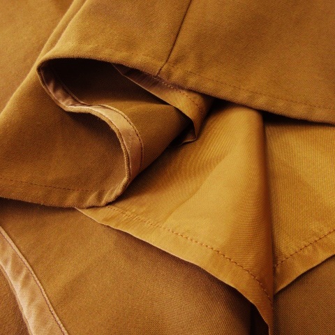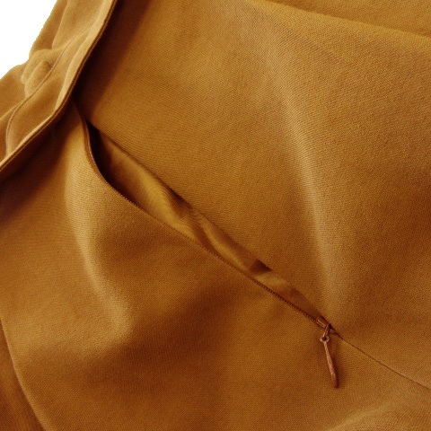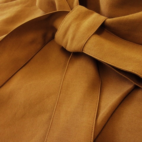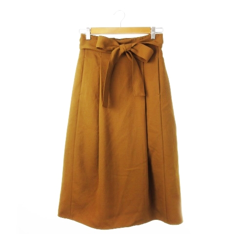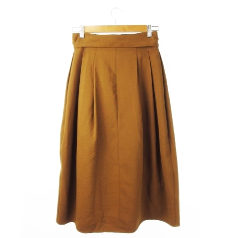 デミルクス ビームス Demi-Luxe BEAMS スカート フレア ミモレ ロング タック ハイウエスト ウエストマーク リボン シャリ感 36 茶