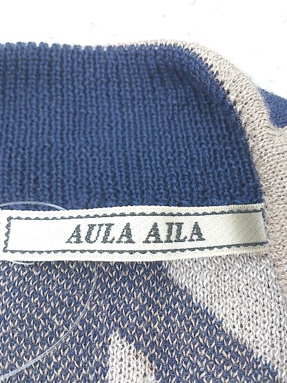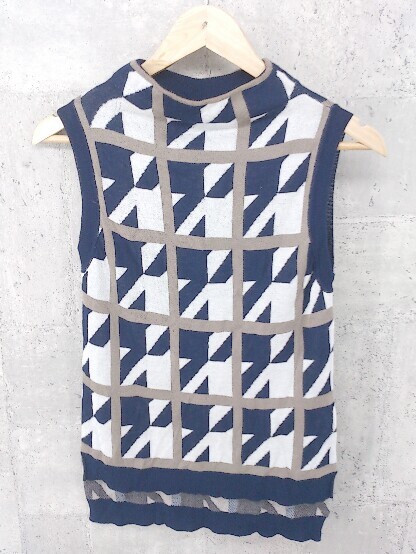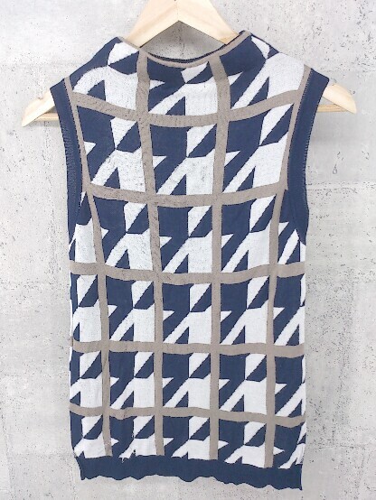 ◇ AULA AILA アウラ アイラ 総柄 ボトルネック ノースリーブ ニット セーター 0 ネイビー ホワイト グレージュ *