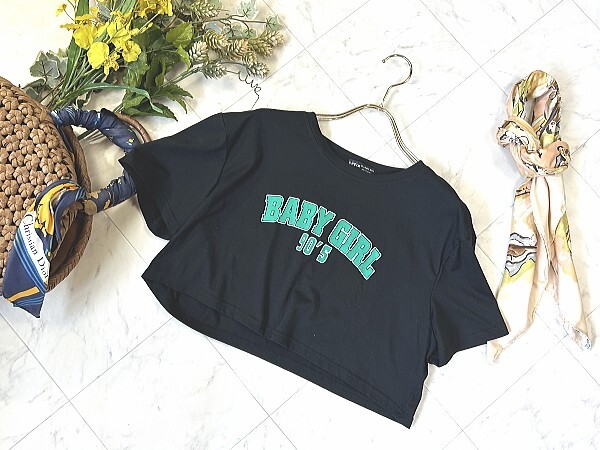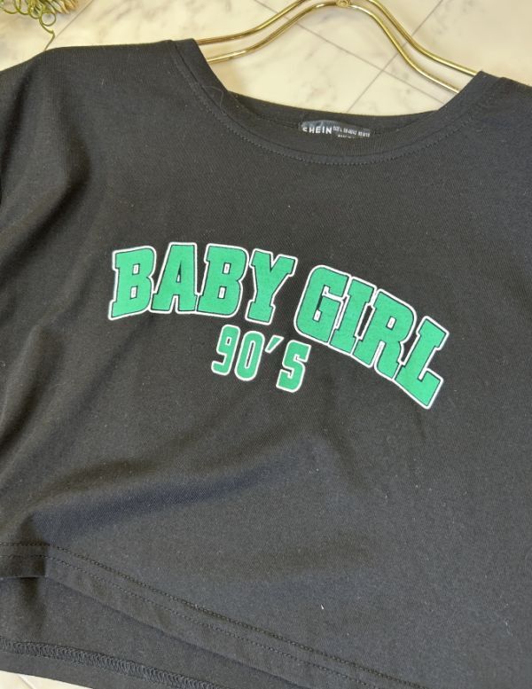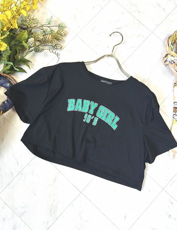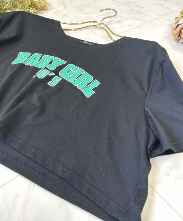 e417★ SHEIN シーイン ショート丈 ロゴ Tシャツ ロゴT レディース トップス 90’S BABY GIRL 1990年 ジム Y2K ウェア 半袖 丸首
