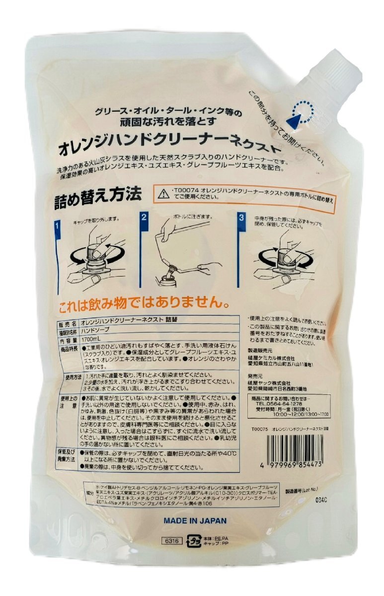 品名:オレンジハンドクリーナー 詰替 1700mL