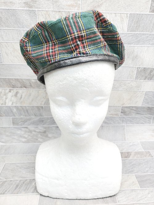 ◇ Mokati チェック ベレー 帽子 グリーン系 マルチ サイズ レディース P