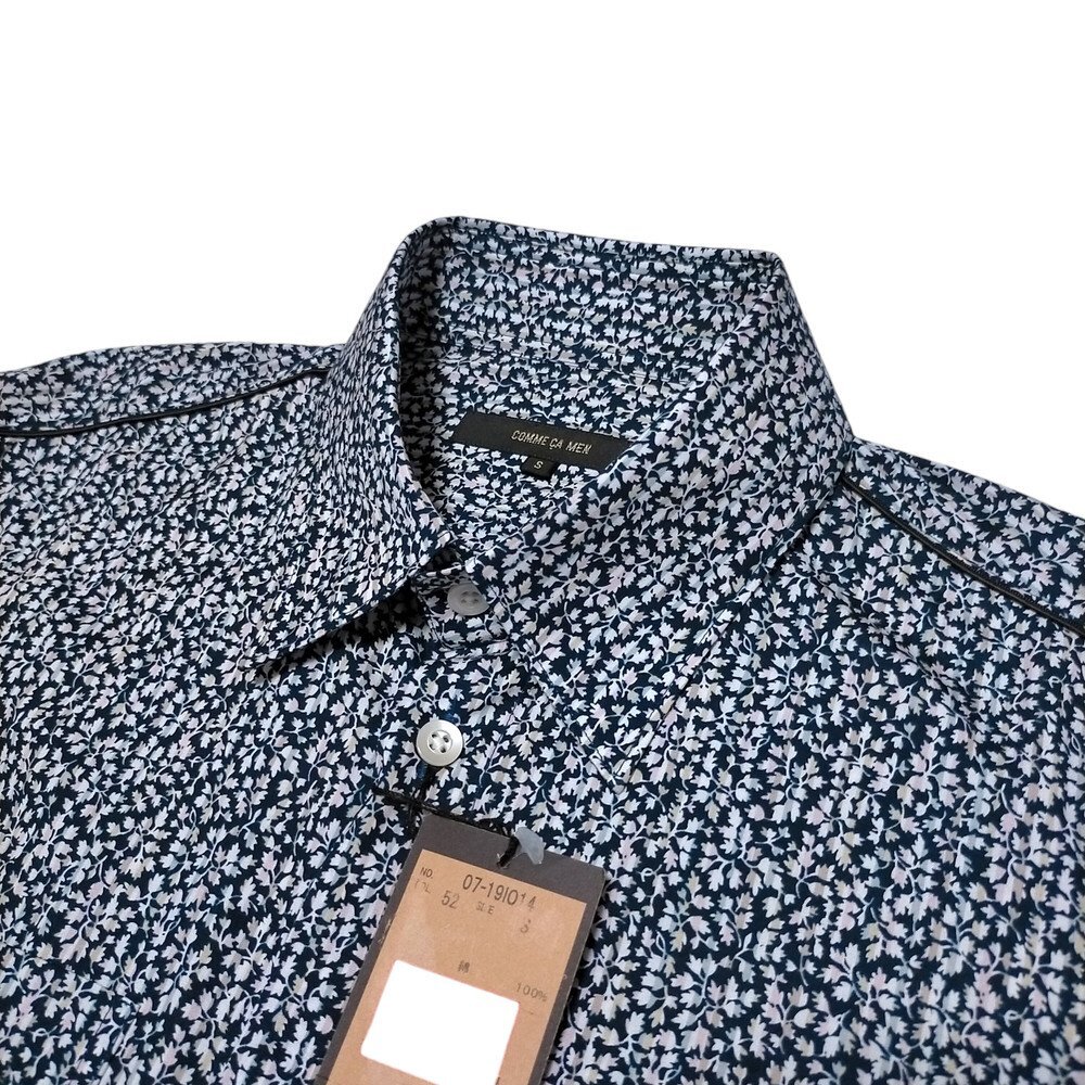 新品正規70%OFF COMME CA MEN コムサメン 日本製 ウエスタンシャツ S モード 青 花柄 フラワー o1452s st