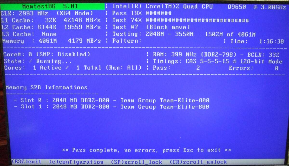 memtest86で2周ほどしましたがエラーはありませんでした。