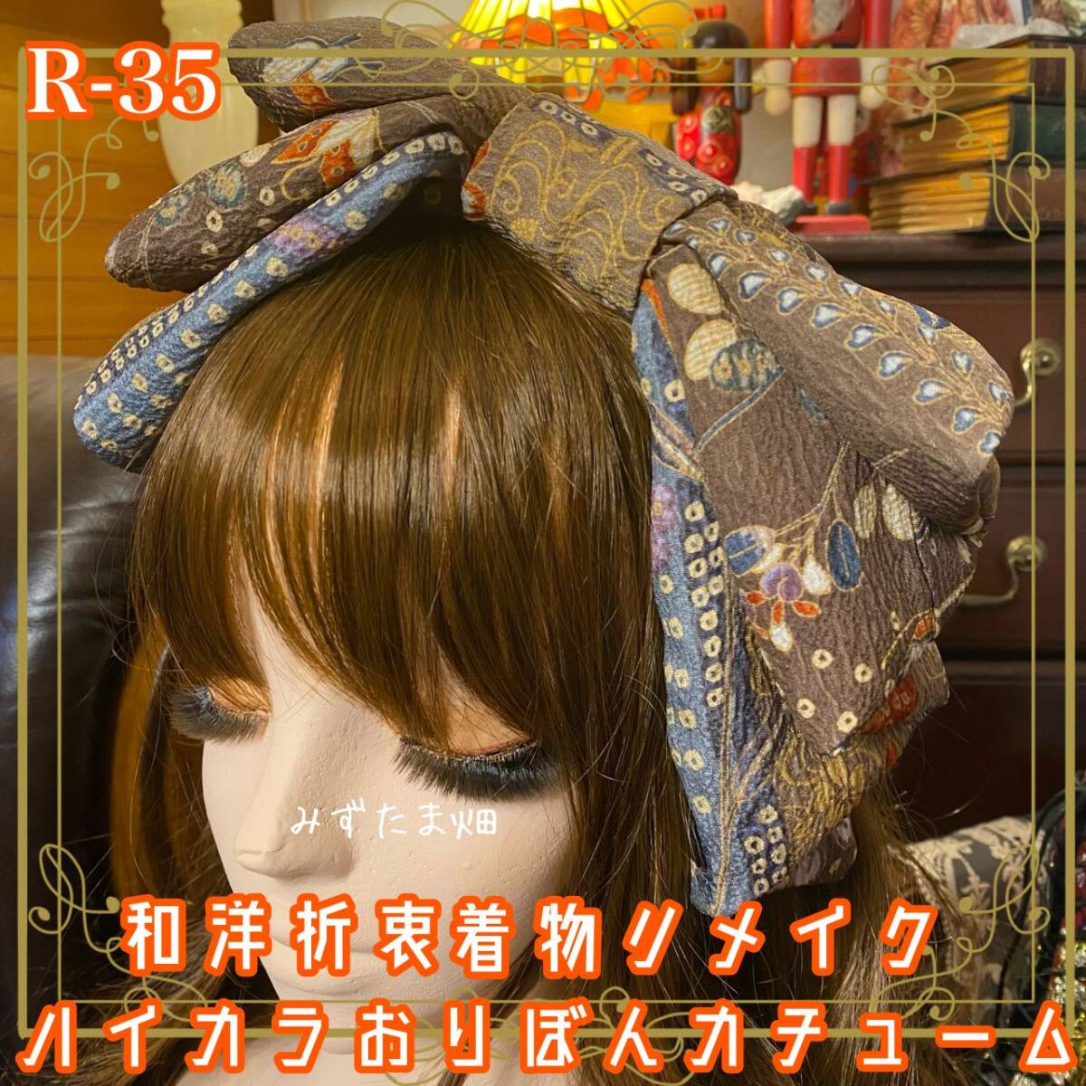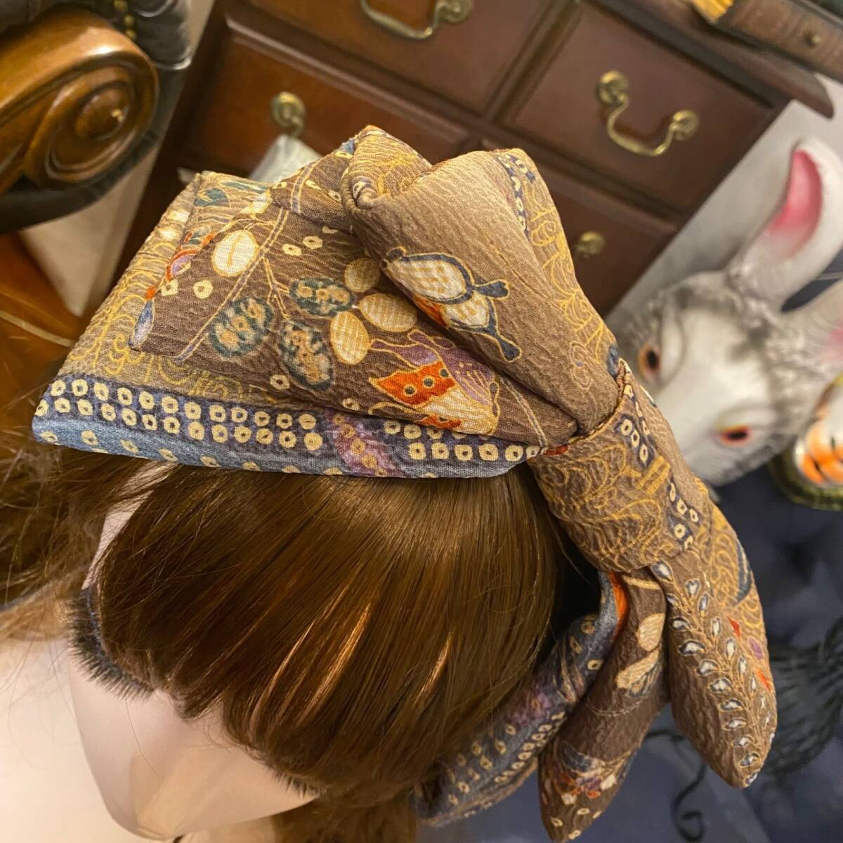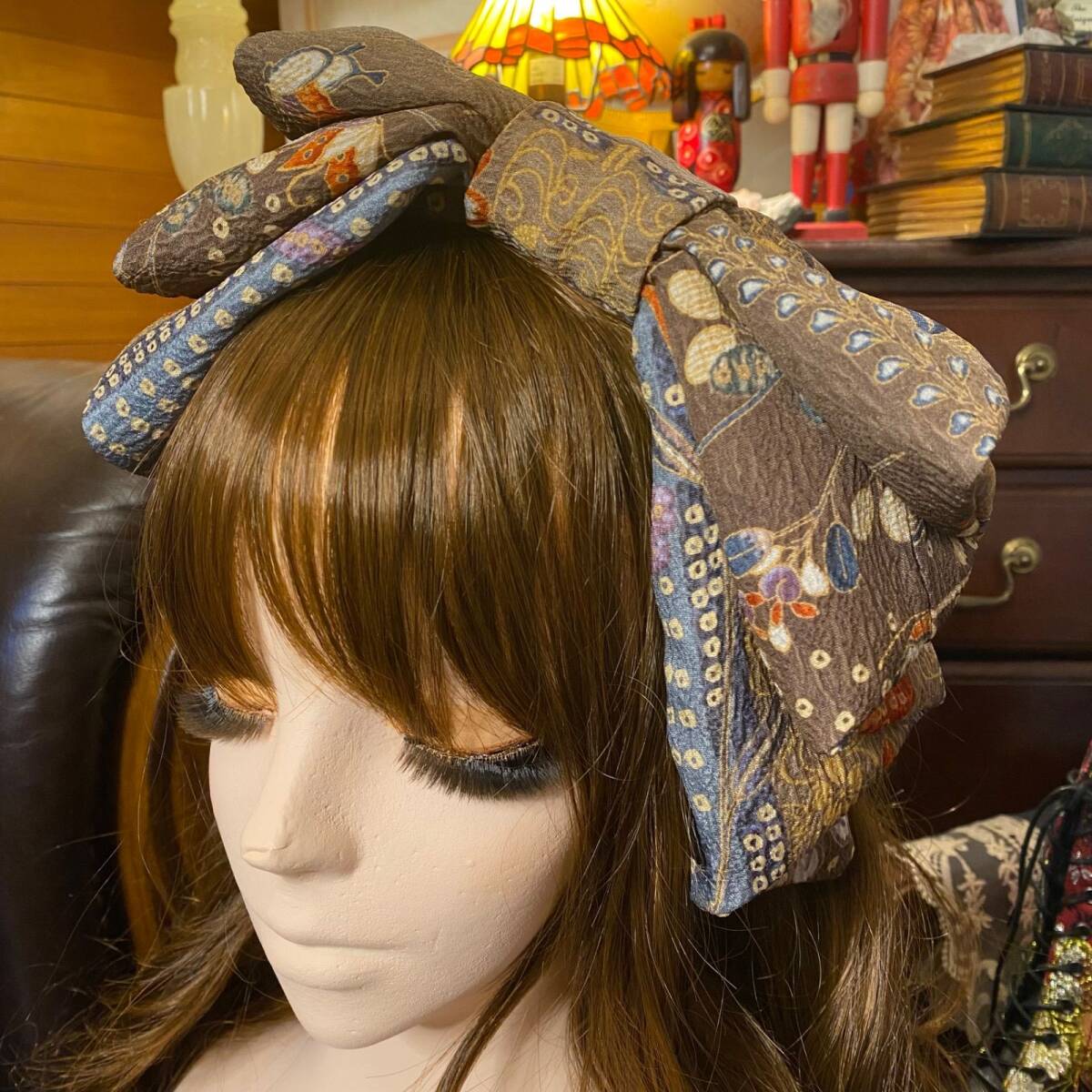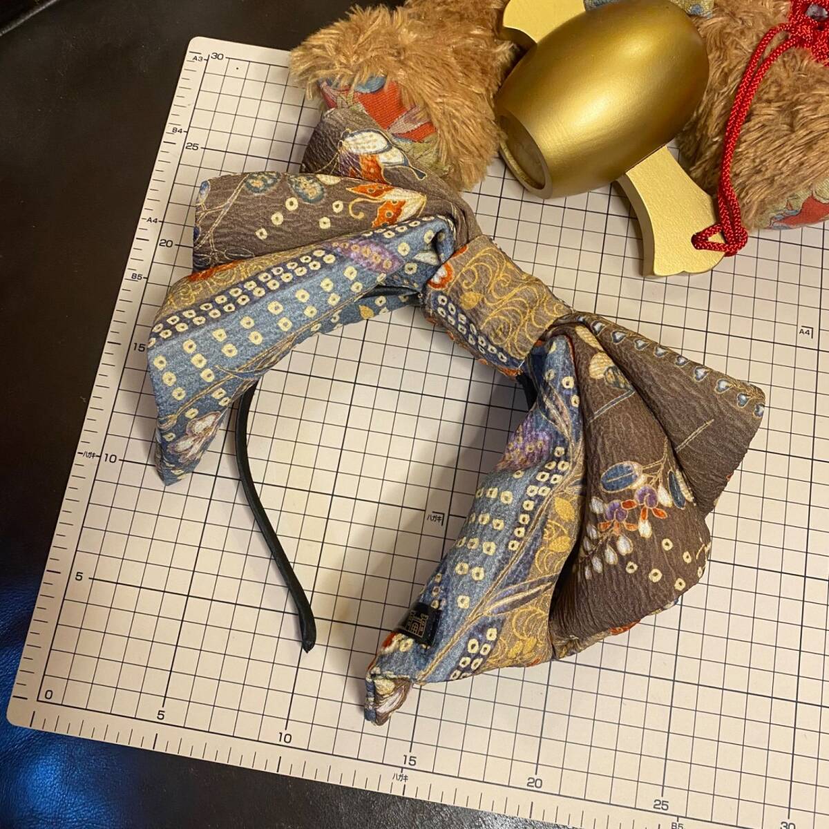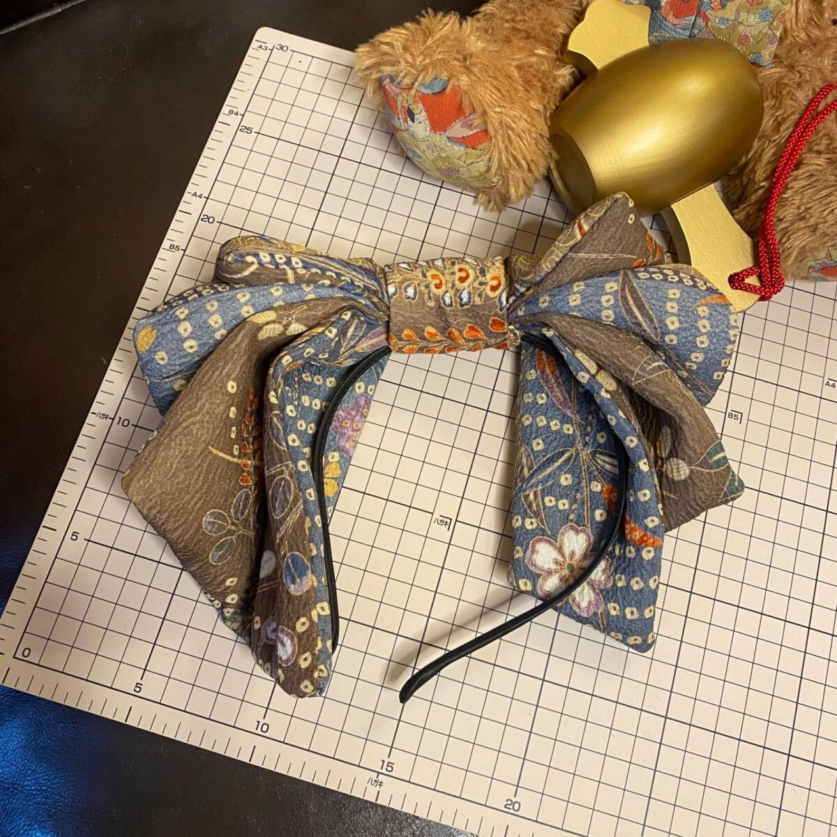 【 和洋折衷 着物リメイク ハイカラおりぼん カチューム カチューシャ ヘッドドレス ヘアアクセサリー 和ロリータ ハンドメイド モダン レトロ R-35 】