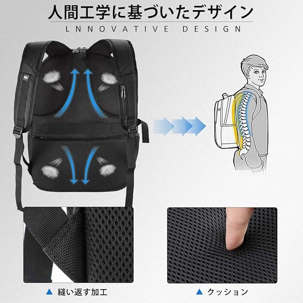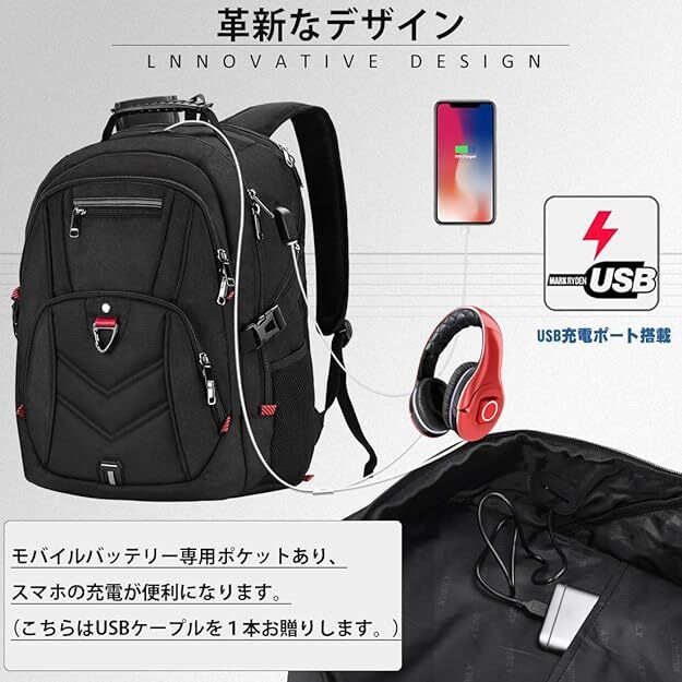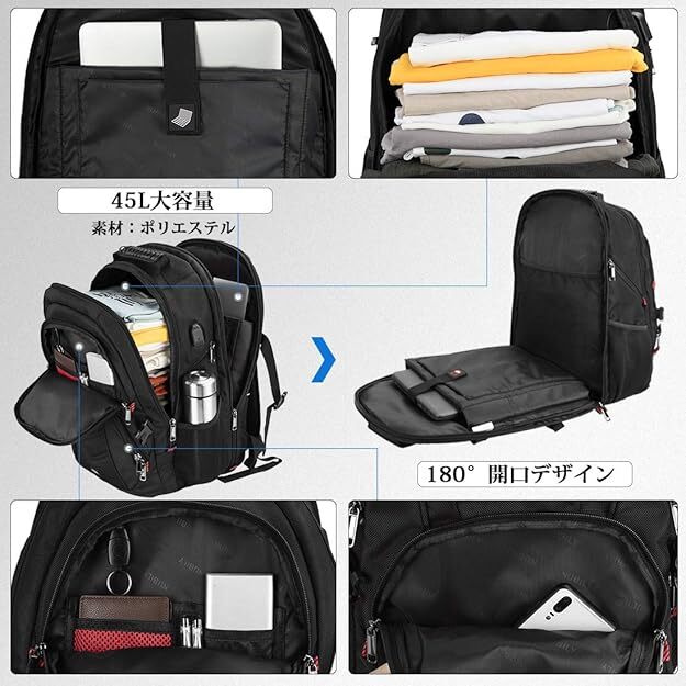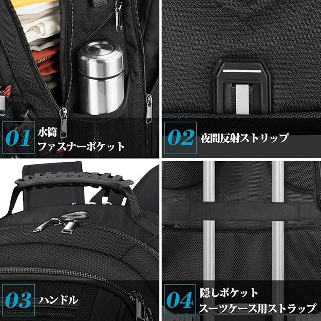 [NEWHEY] リュック メンズ バックパック 大容量 40L リュックサック 盗難防止 17.3インチ PCバッグ 多機能 防水 イヤホン穴 USB充電ポート
