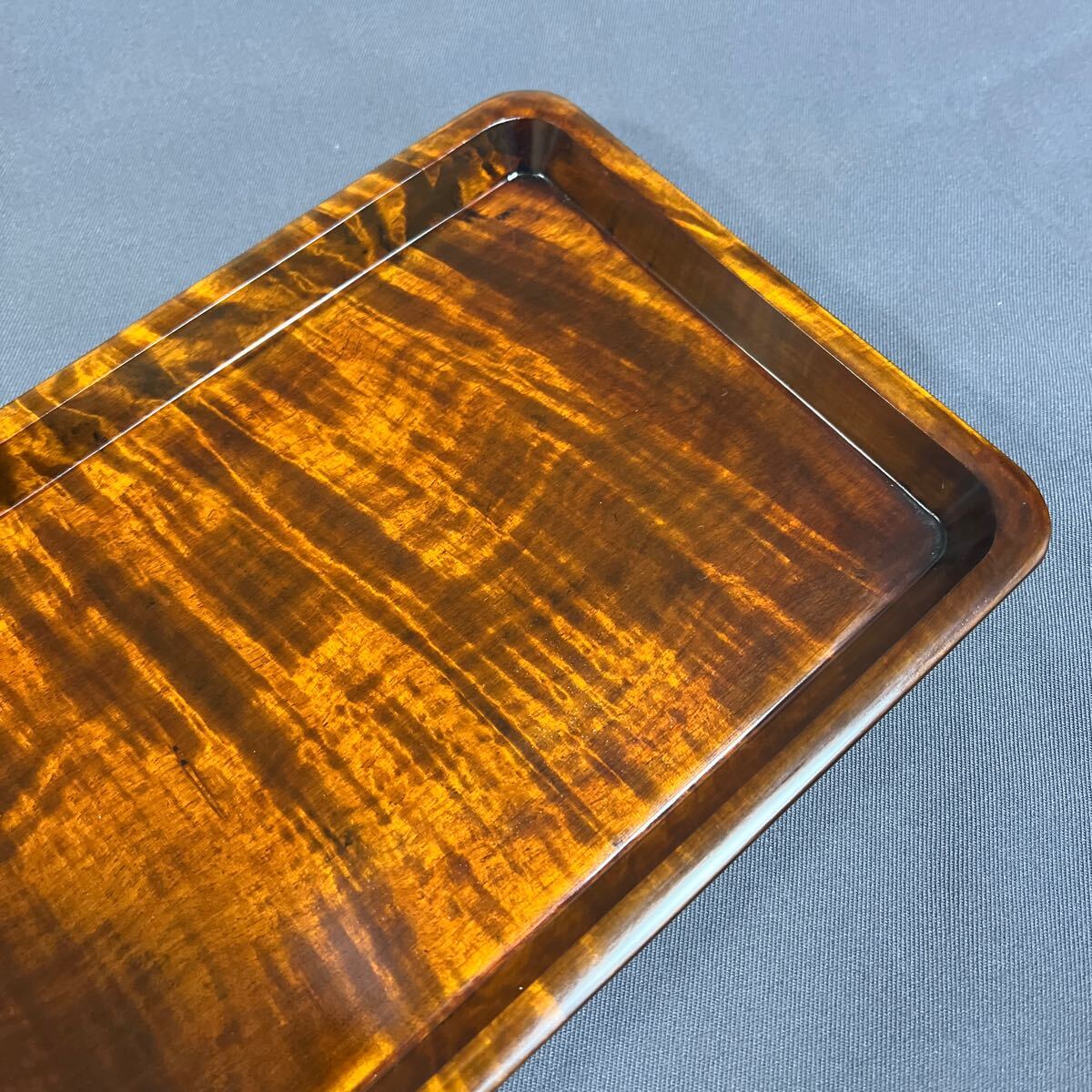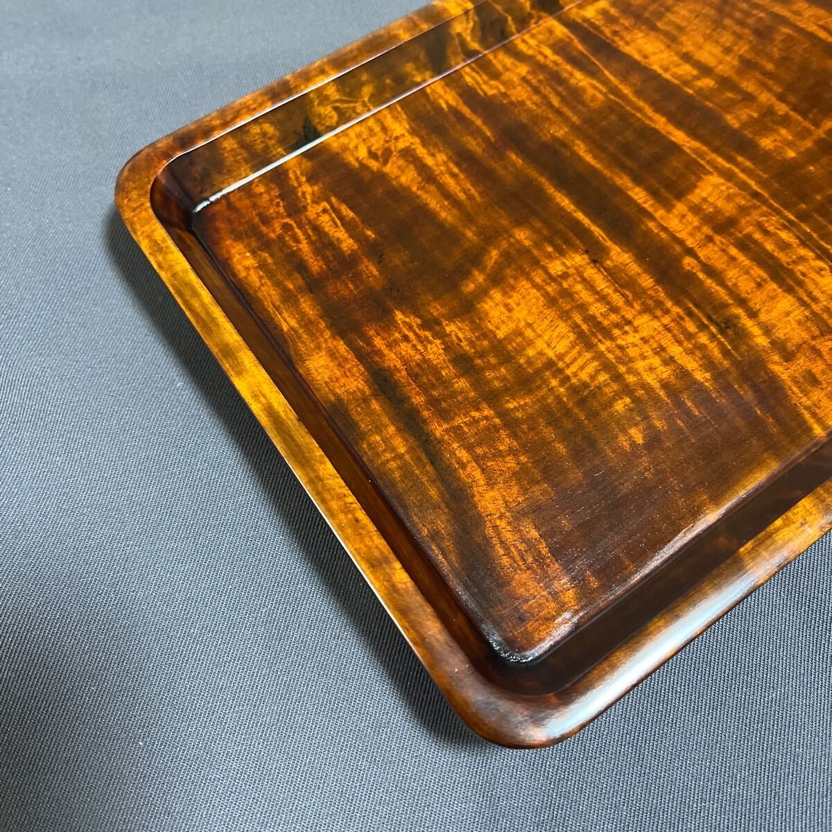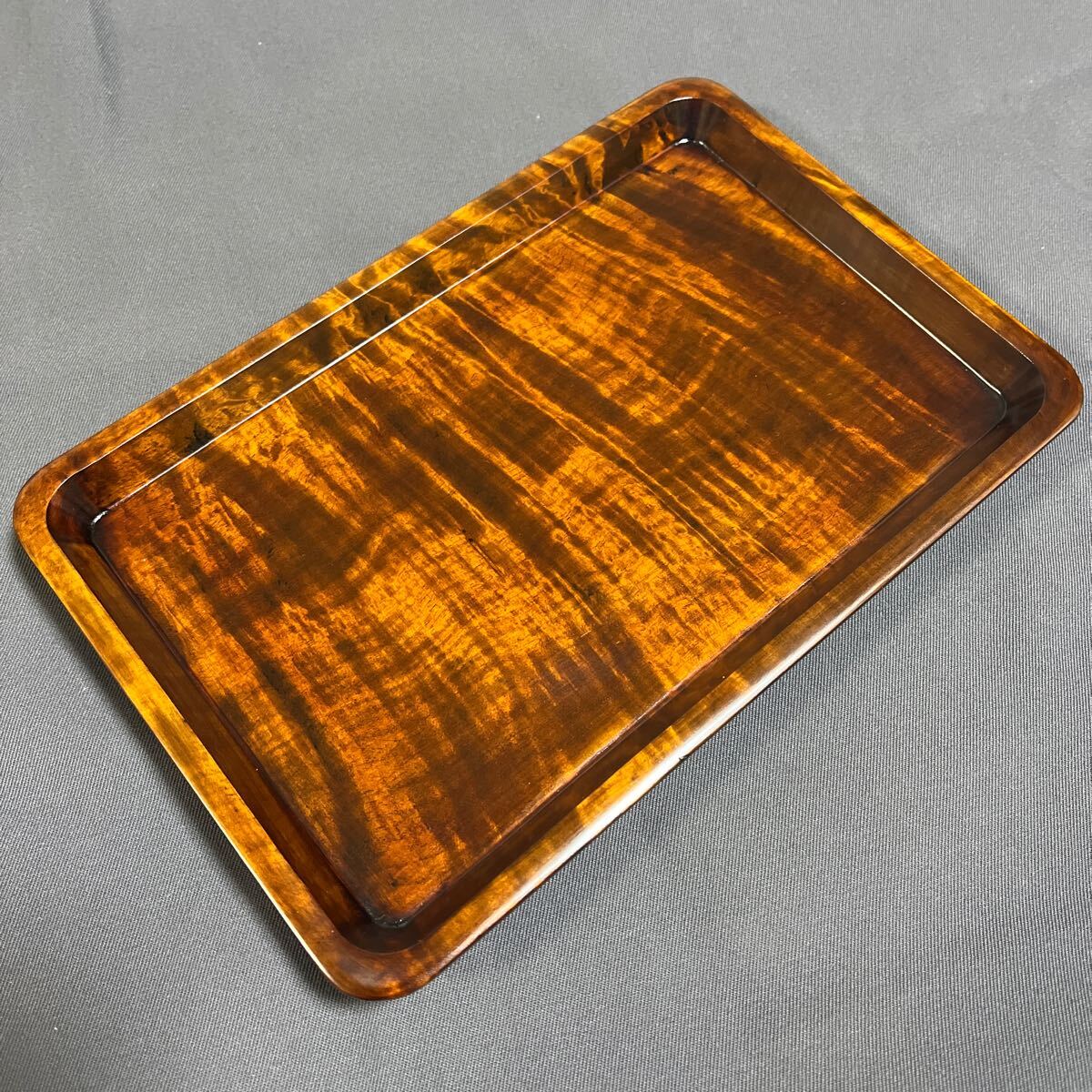 即決   縮杢栃拭漆盆 (ちぢみもくとちふきうるしぼん) 煎茶 235mm×153mm×20mm IM709