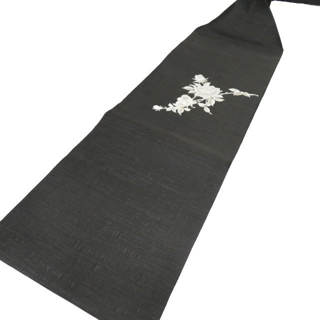 サイズ 375cm x 30.5cm 素材 正絹 商品ランク B ●お色 黒色 使用感の少ない、美しいお品物です。 冬以外の3シーズンでお召しいただけます。 一部商品は実店舗・他サイトでも並行して販売しておりますので売り切れの際はご了承ください。 その他多数販売中 ogu | ||||||
