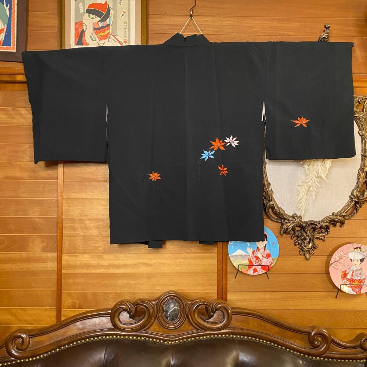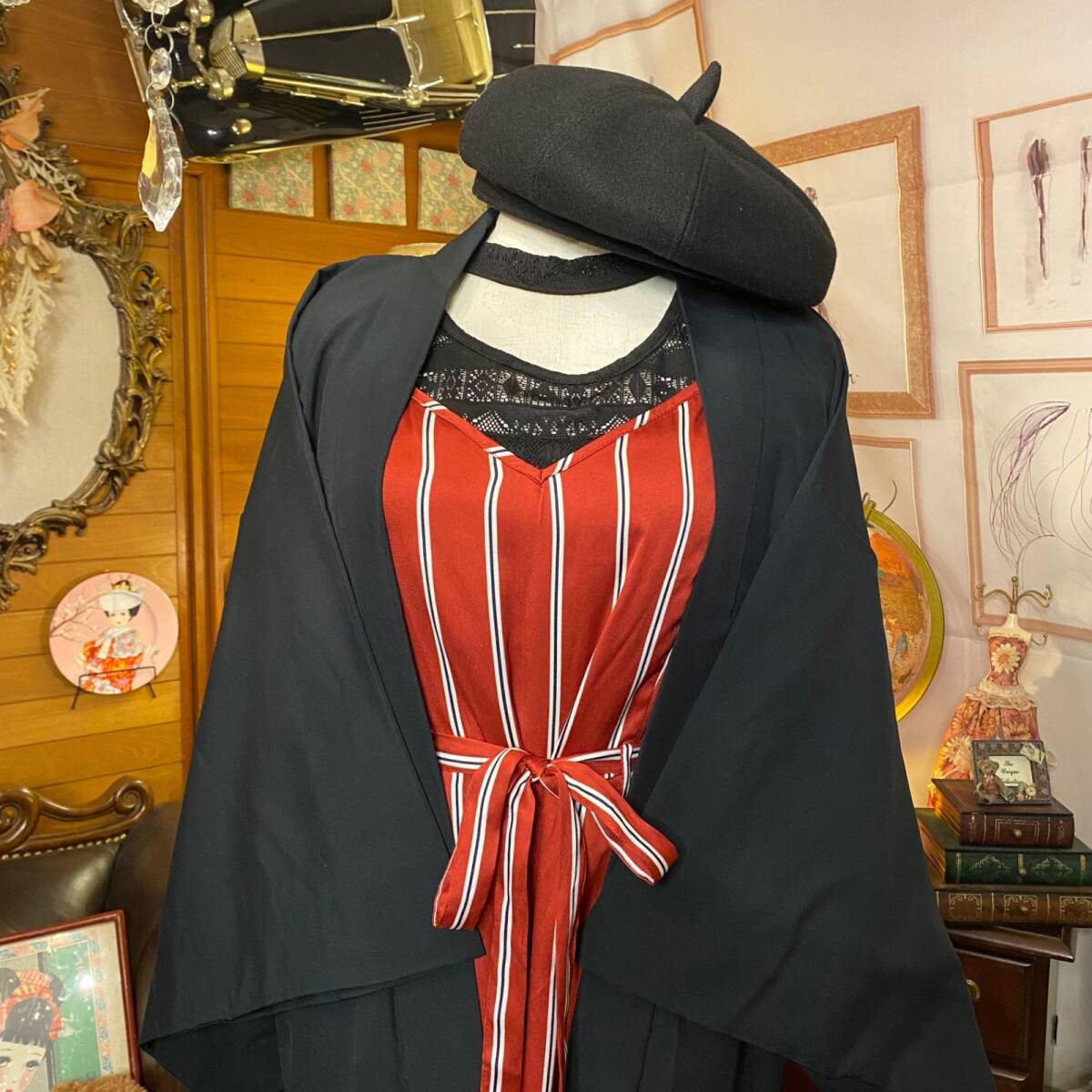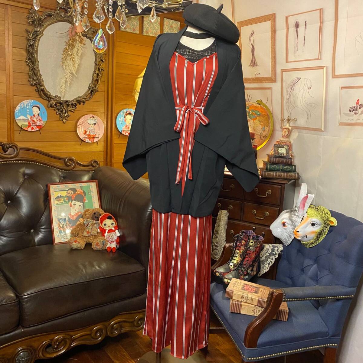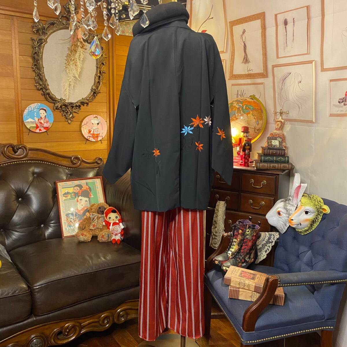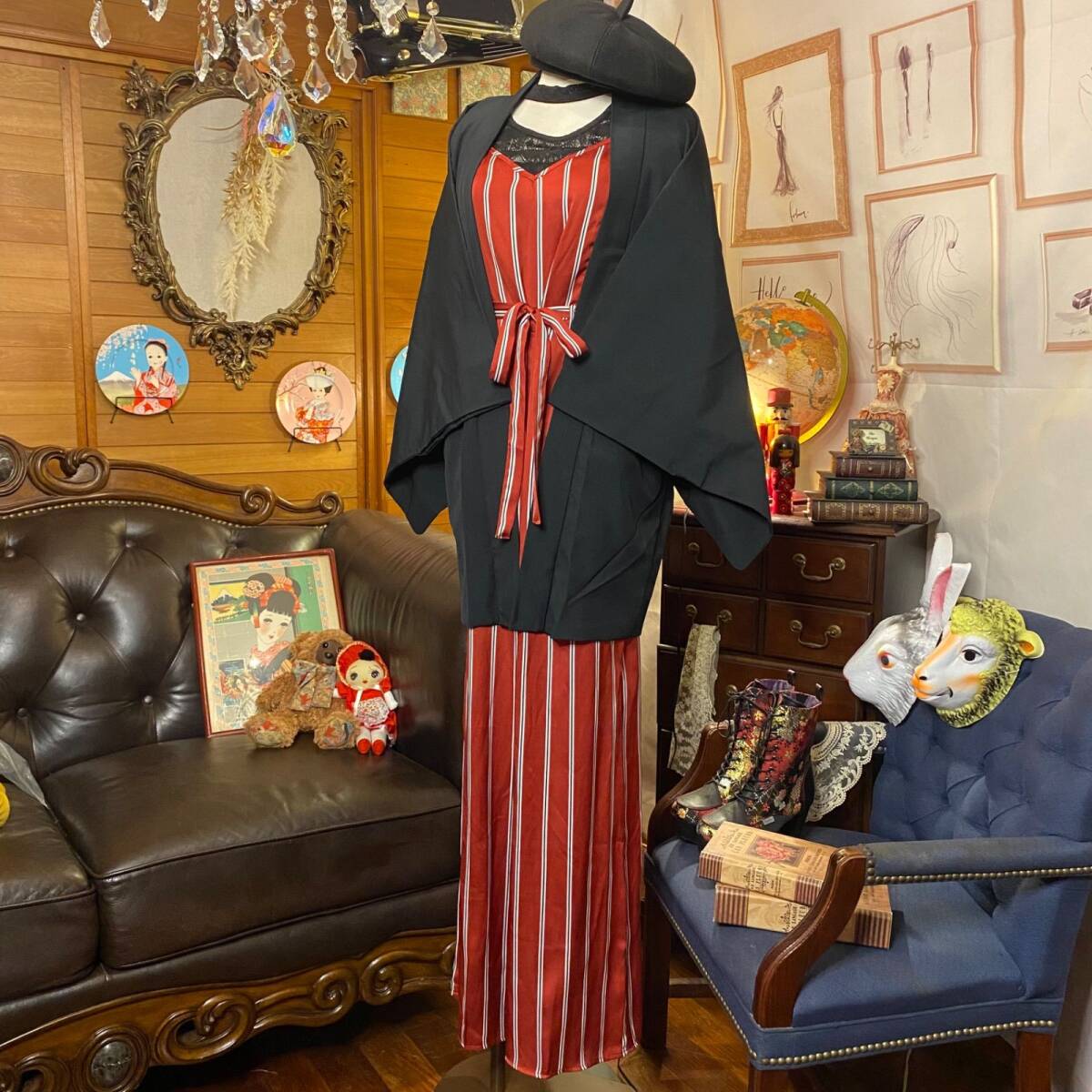 【 和洋折衷 セレクト まとめ売り コーデ レトロ アンティーク クラシカル 古着 刺繍 羽織り 和装 ヴィンテージ 黒/ブラック×赤/レッド×ストライプ柄系 2点セット C-245 】