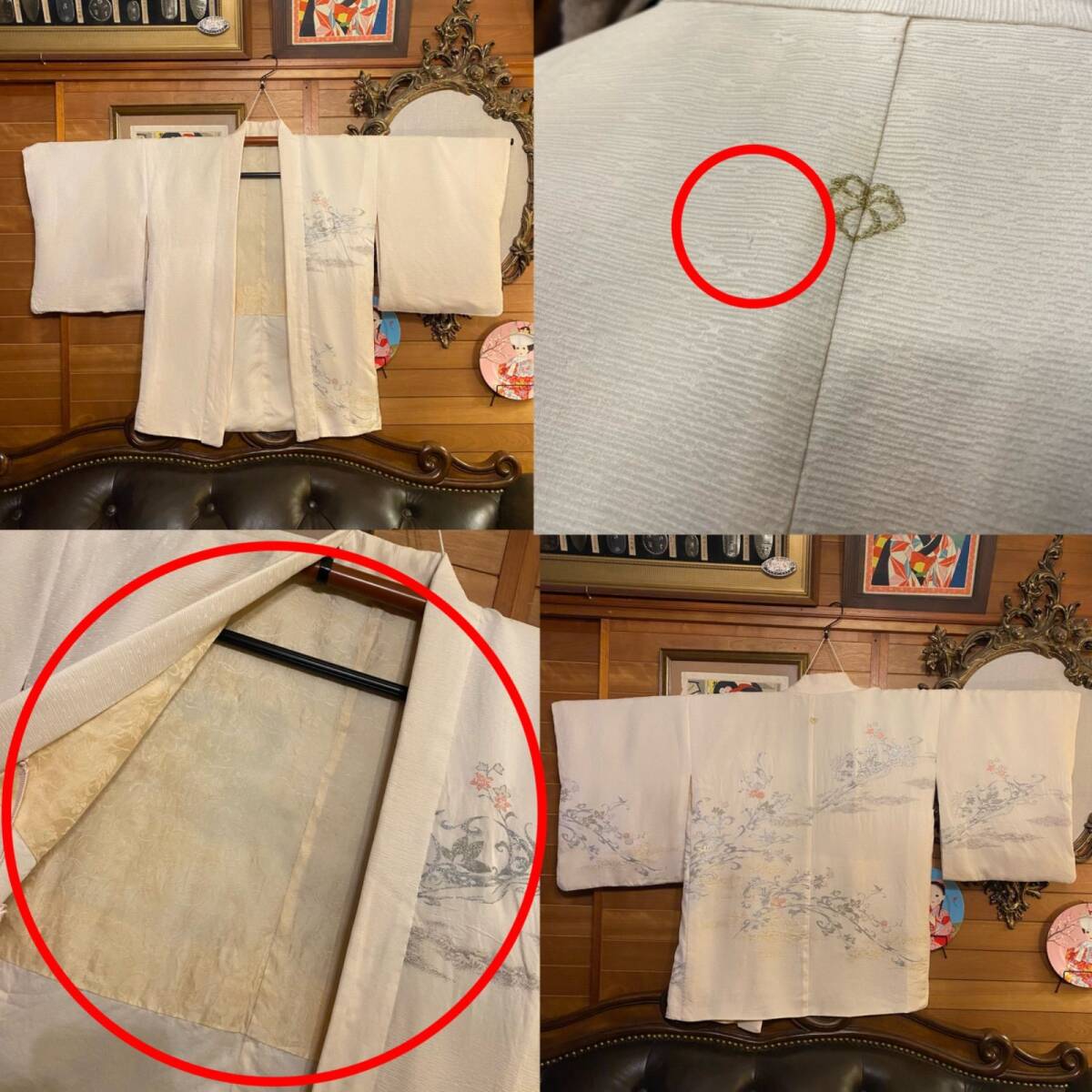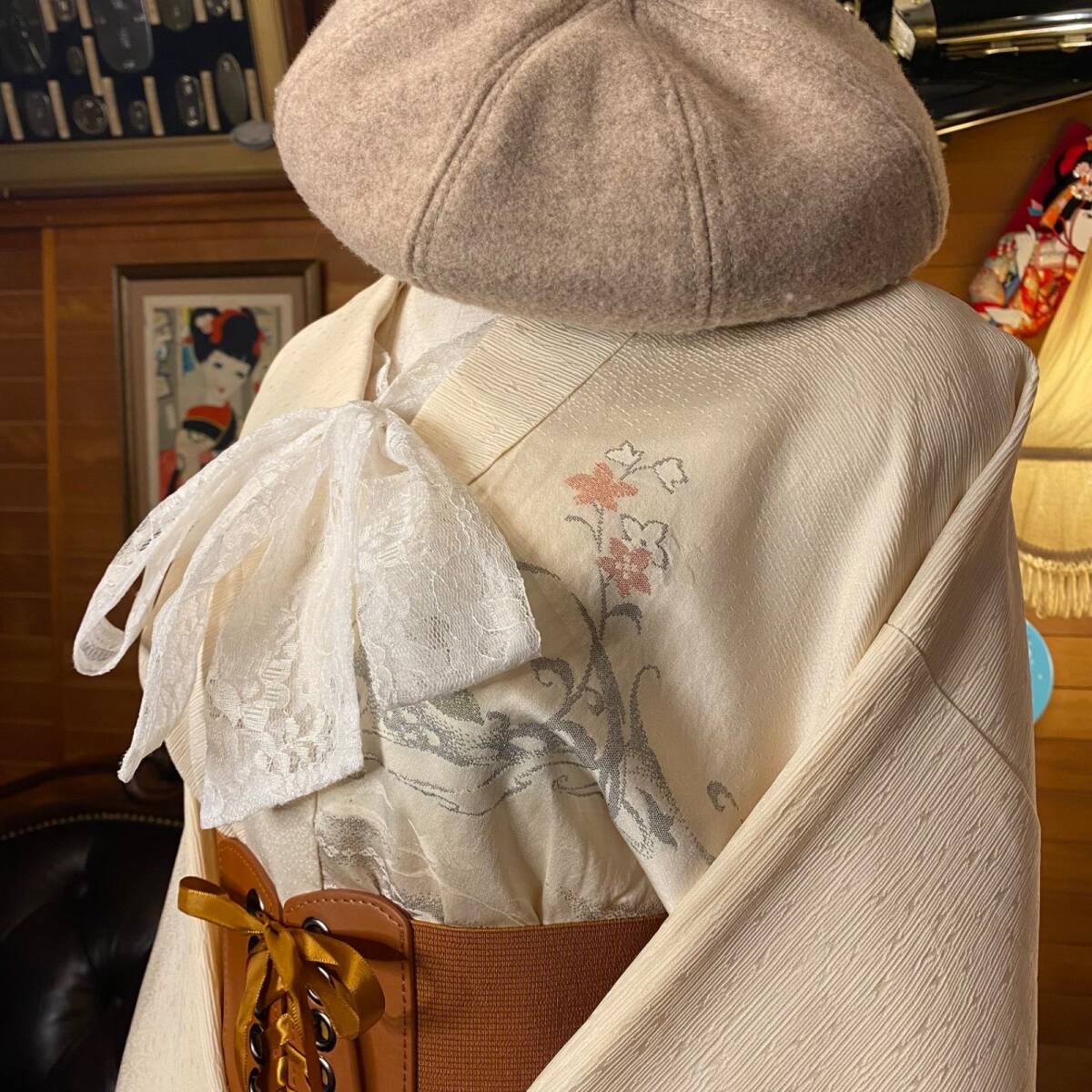 【 和洋折衷 セレクト まとめ売り コーデ レトロ アンティーク ビンテージ ヴィンテージ クラシカル 古着 アンティーク 和装 華やか 羽織り ラメ刺繍/アイボリー×ボタニカル/フラワー柄 系 3点セット C-262】