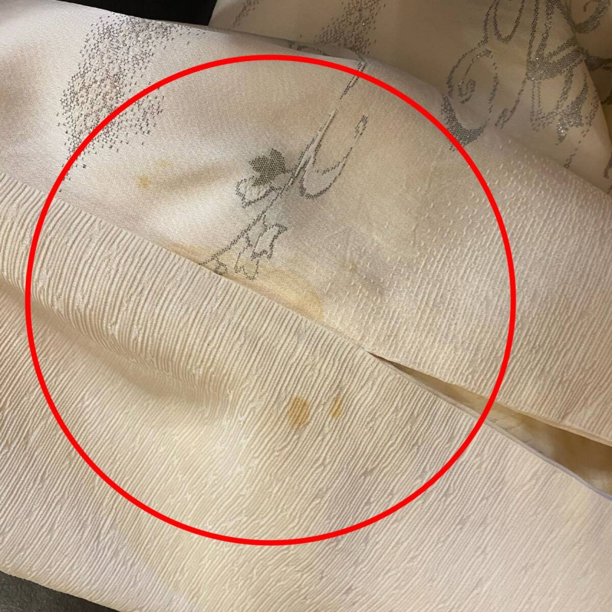 ○トルソー試着時あまり気にならないと感じましたが、全体的にうっすら黄変、小キズ数ヶ所ございます。特に両袖部分の黄変シミが目立ちます。