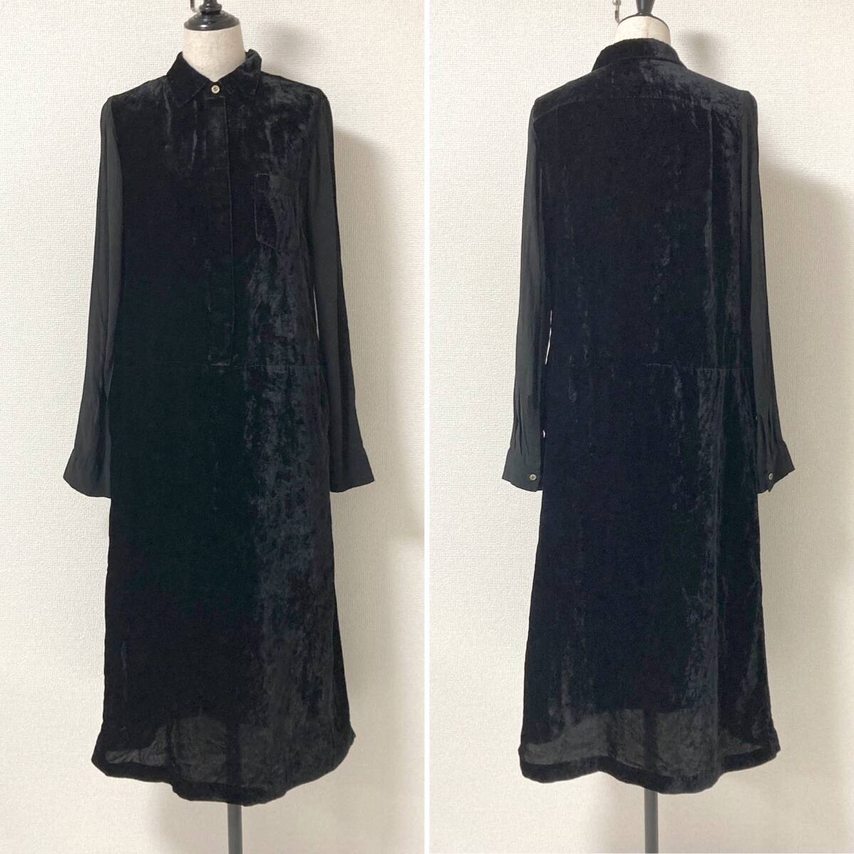 AD1999 tricot COMME des GARCONS ベロア レーヨン 切替 ワンピース ブラック