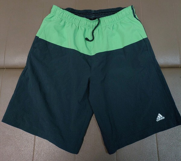 アディダス製ハーフパンツ 黒グレー×緑カラー 股下25センチ サイズL 欲しい方に USED Climalite 両サイドポケットあり