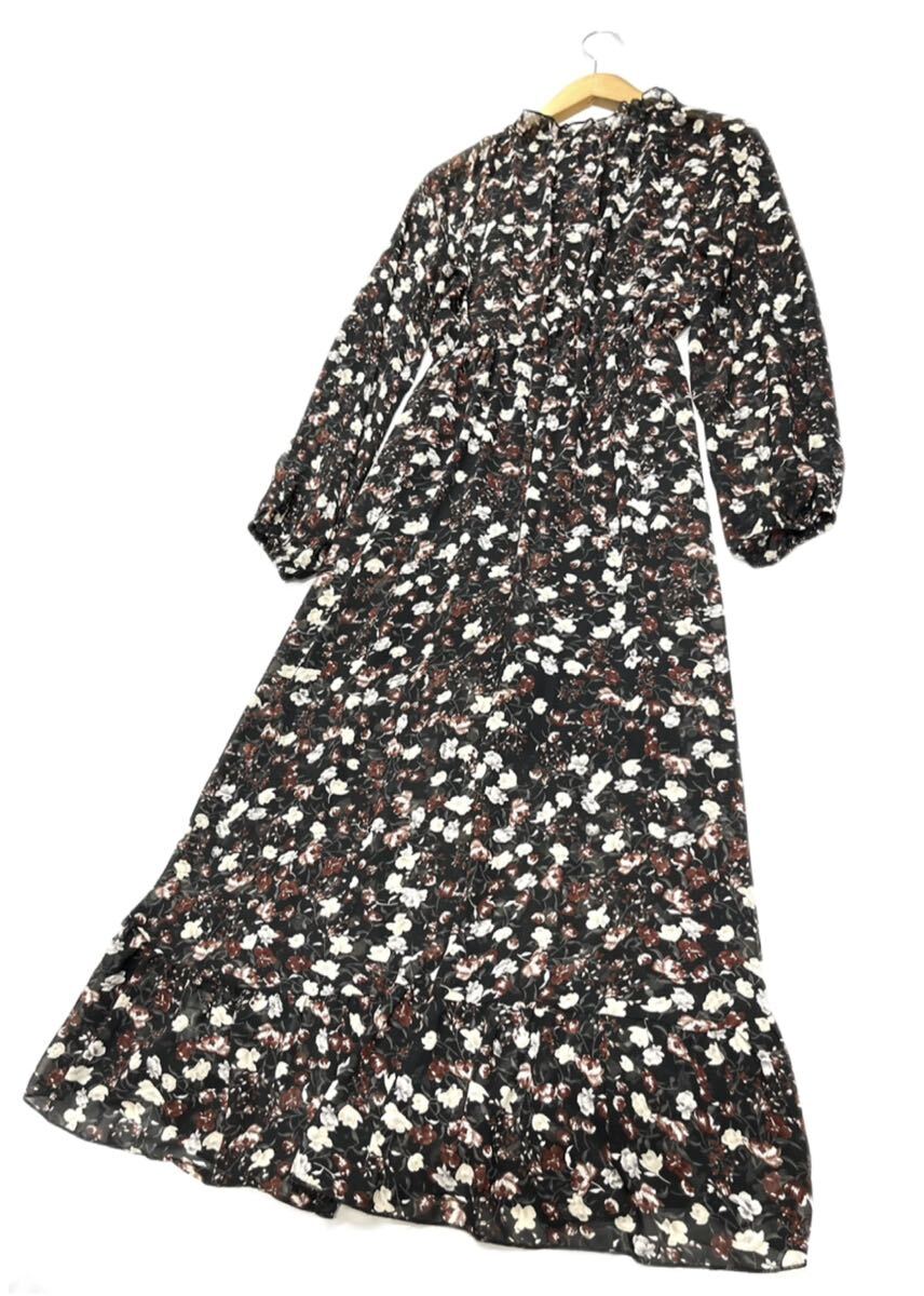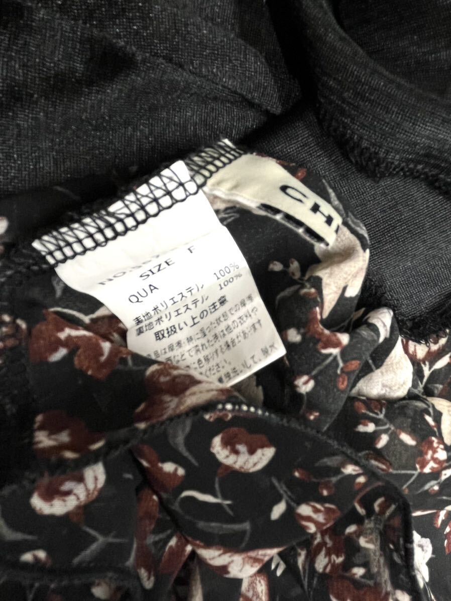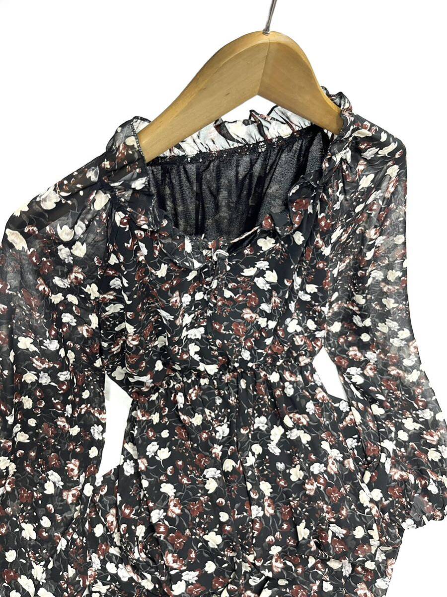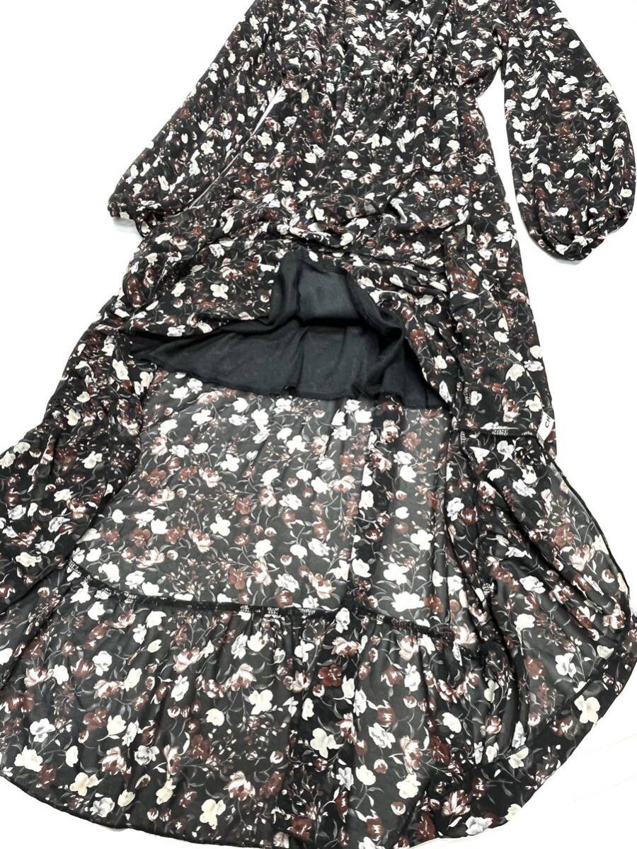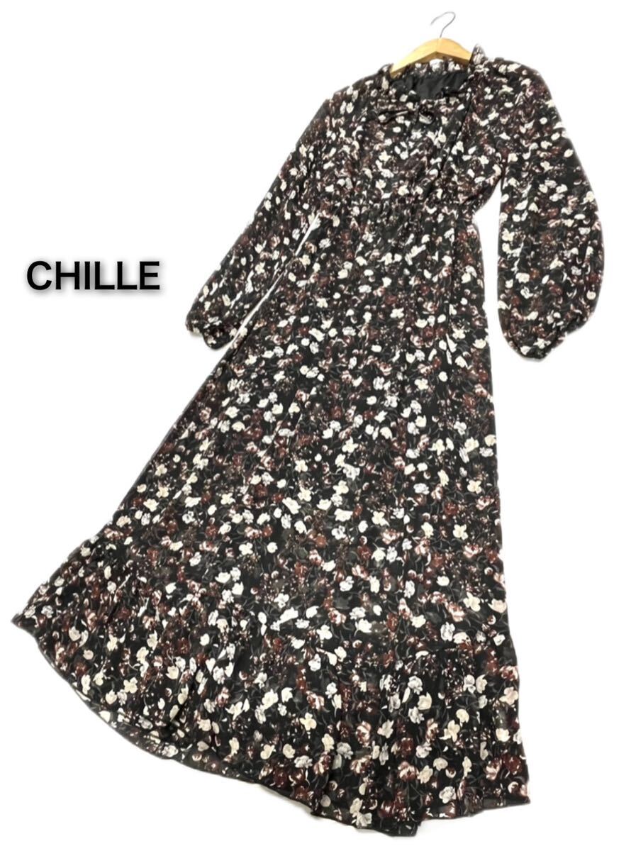CHILLE★チル★(F)花柄 シフォン ロングワンピース/黒系 美品