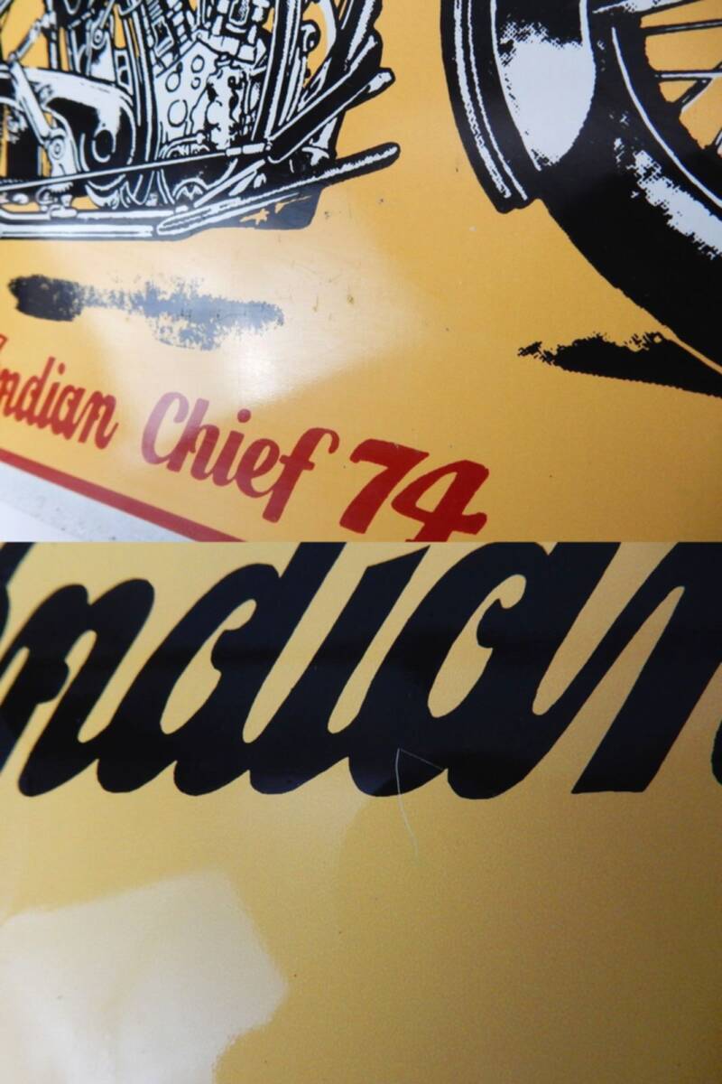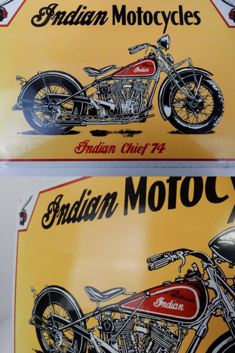 【ヴィンテージ?】 Indian Chief 74 インディアン モーターサイクル スチール?看板 約43.2cm程×約28cm程 中古品 JUNK扱 一切返品不可で