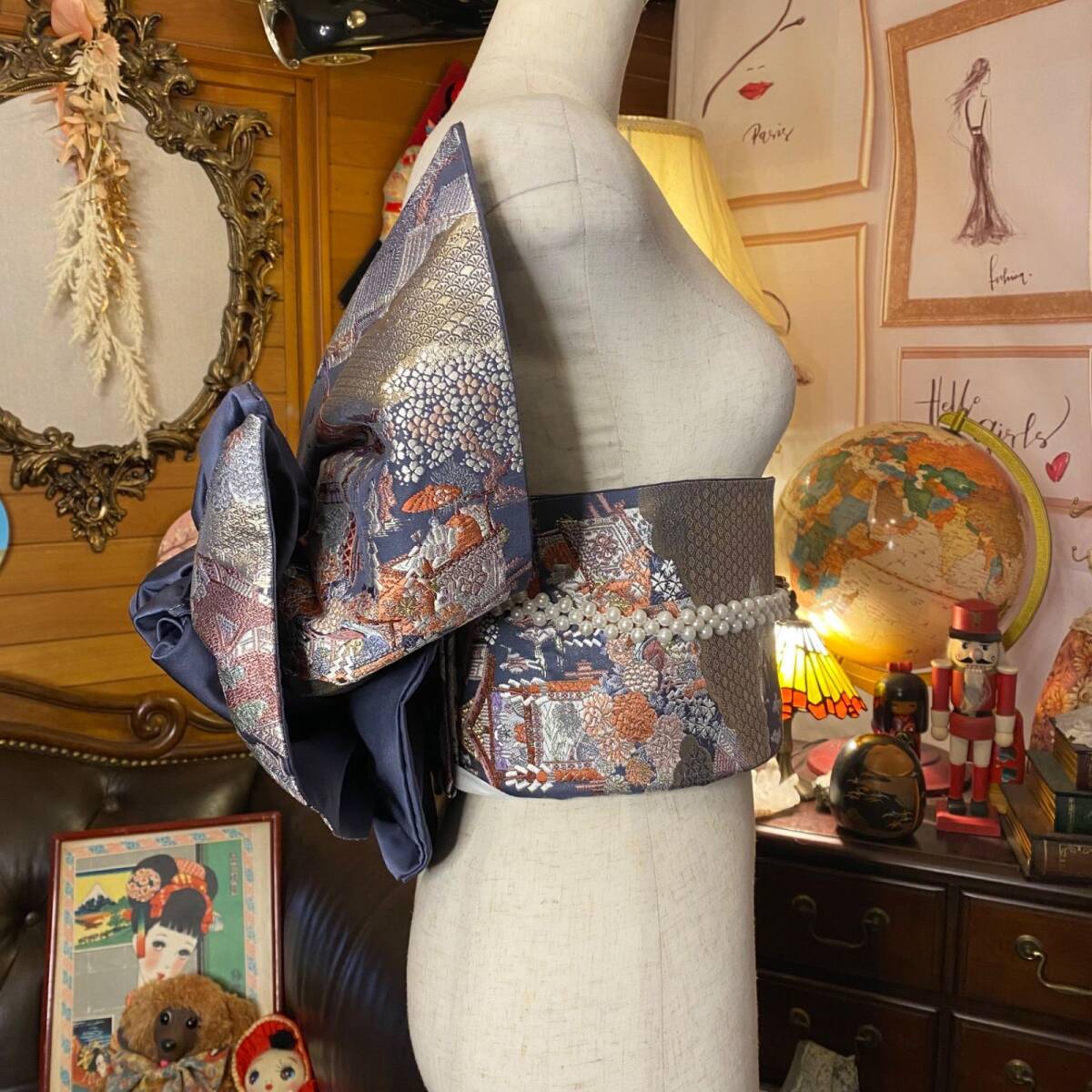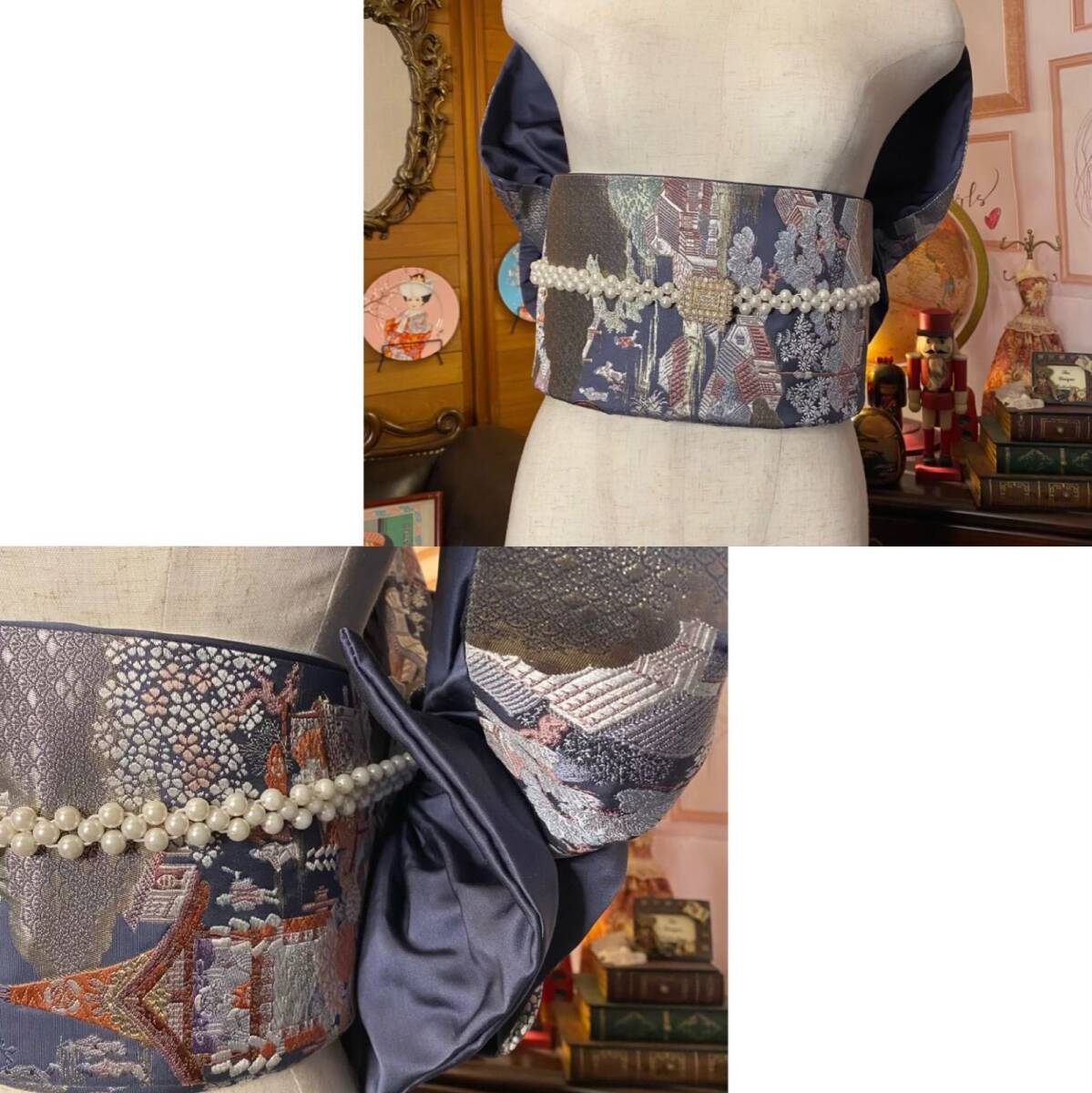 【 和洋折衷 2部式作り帯 リメイク 和 モダン ハンドメイド レトロ 2B-1 】