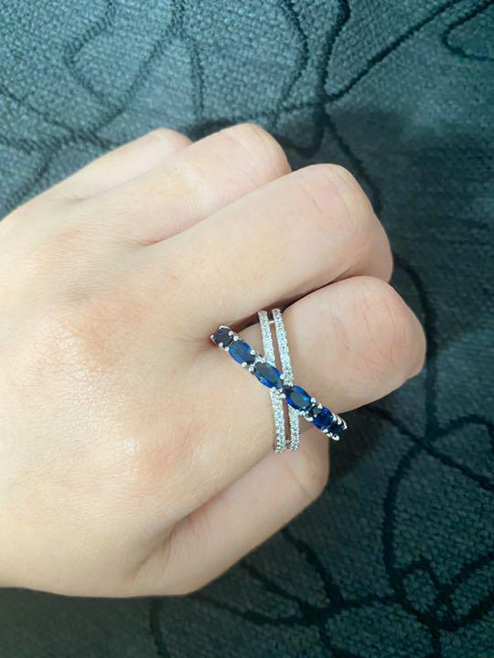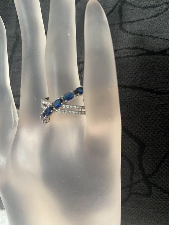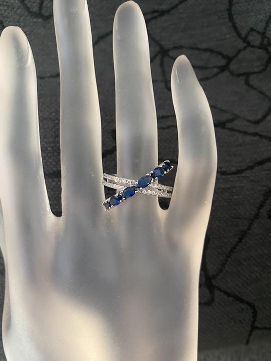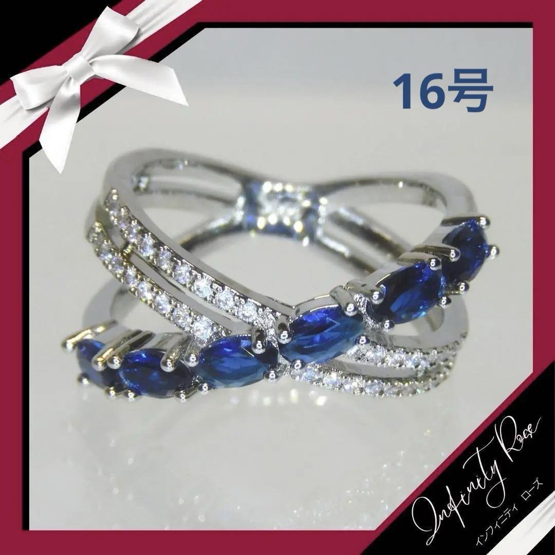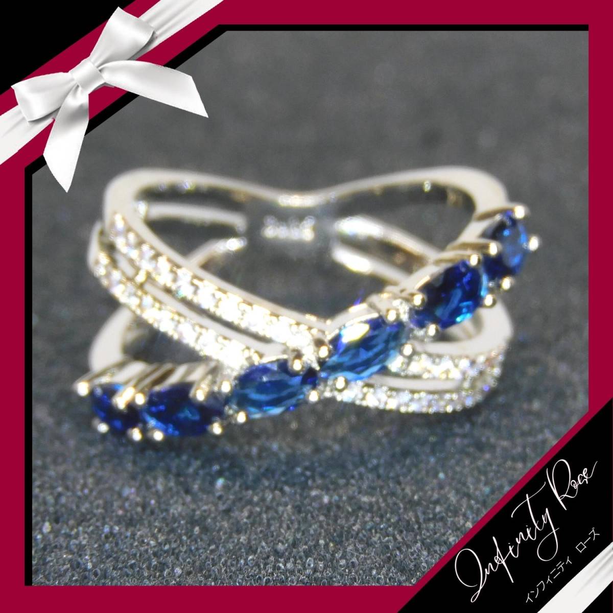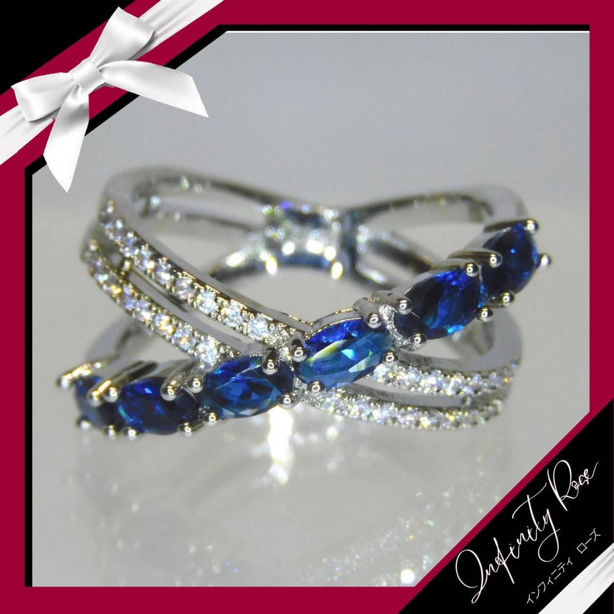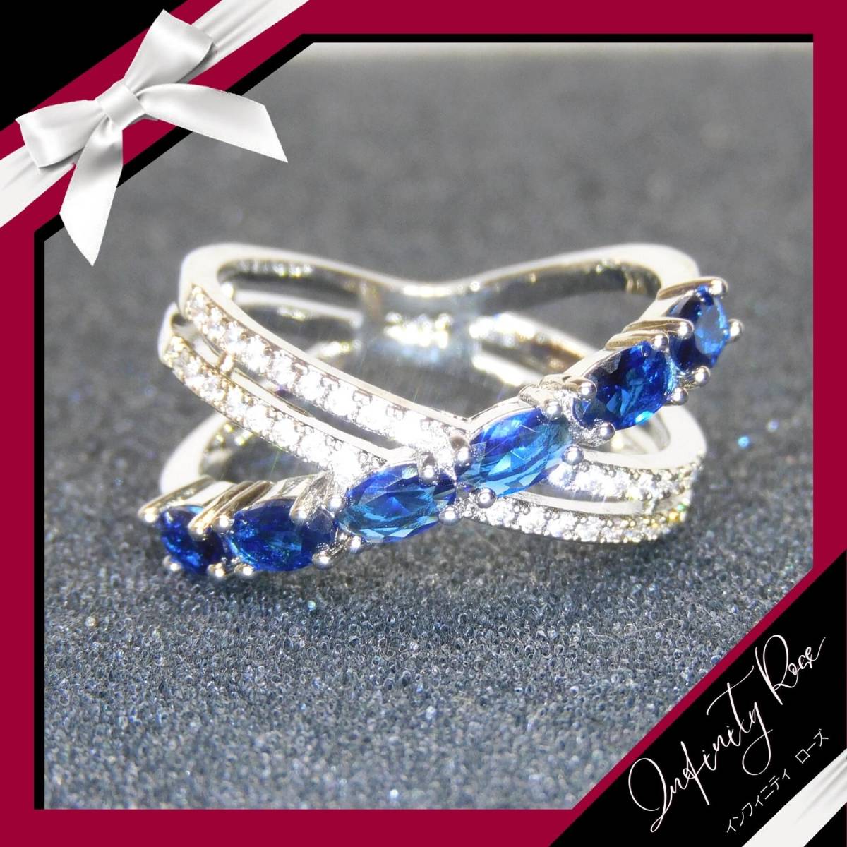 (1207)16号 ブルー×クリアクロス高価な爪留めリング 指輪